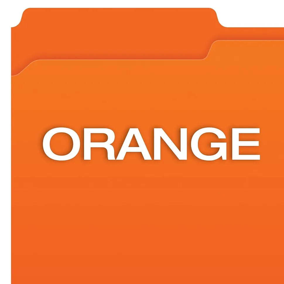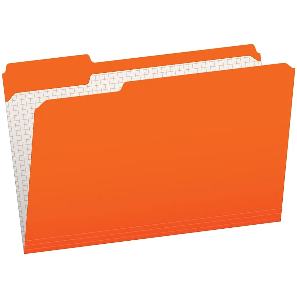 Pendaflex Color File Folders with Interior Grid help you notate and color code files for efficiency. Brightly colored folders reverse to a grid pattern that provides a versatile, creative space for notes and sketches. Reinforced tabs provide extra durability for your busiest files.1/3-Cut tabs in assorted positions. Legal size, orange. 100 Per box.