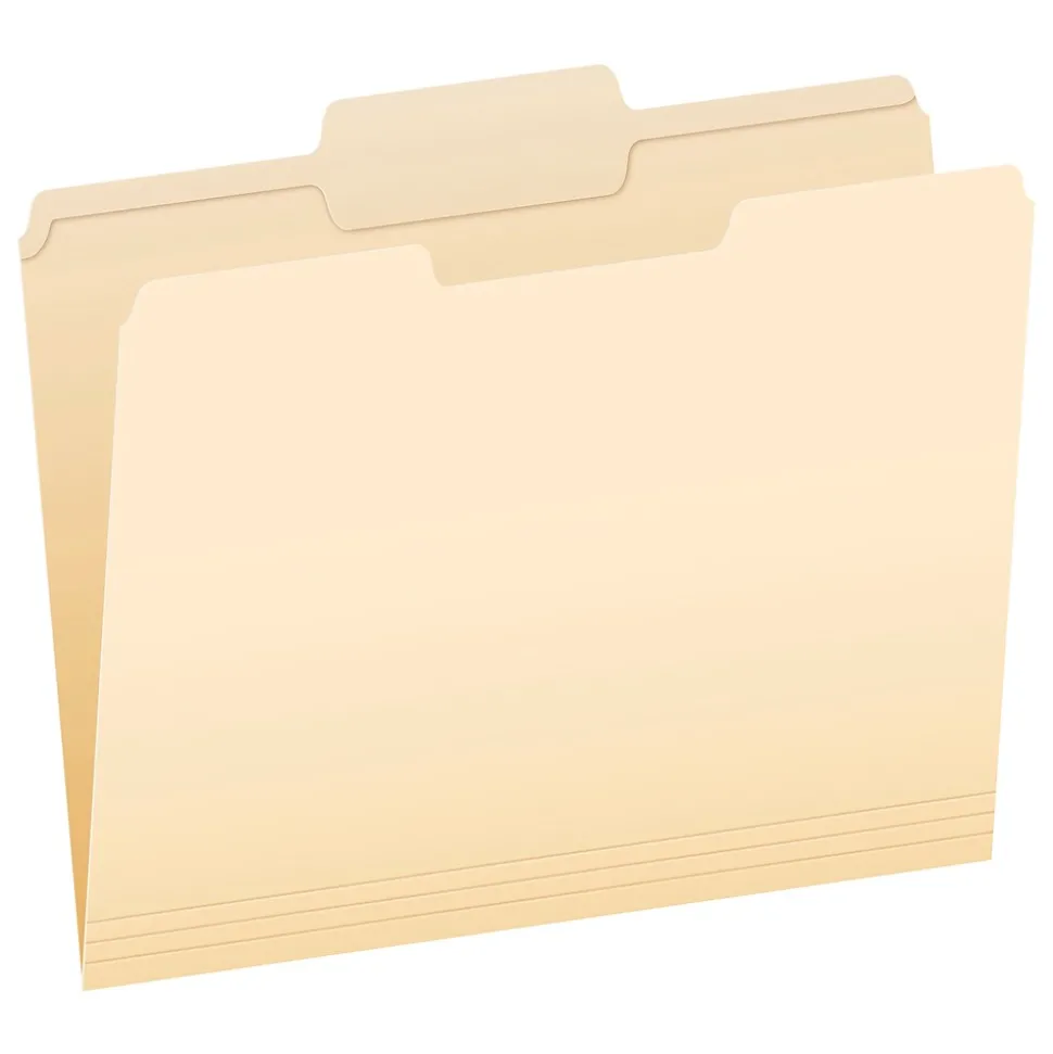 Pendaflex Reinforced File Folders are perfect for your everyday filing needs. Durable 11 pt. manila covers can stand up to active projects. These letter-sized folders fit nicely in your standard hanging Reinforced File Folders. 1 Tab in center position for straight line filing.