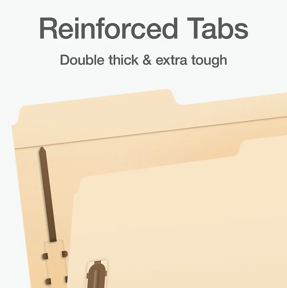 - Box of 50 reinforced fastener folders with double-thick tabs for exceptional durability