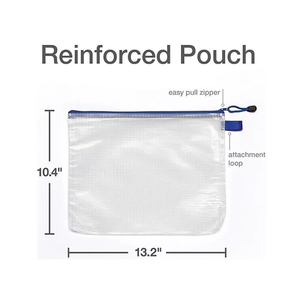 The Pendaflex Oxford reinforced zip pouches are perfect for teachers, students, and parents at home and in the classroom. Secure inside a larger bag, or attach keys or hand sanitizer using the handy loop. These pouches make great organizers for your diaper bag, large tote, beach bag, suitcase, or carry-on.