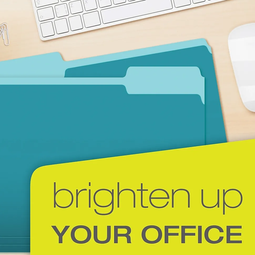 Interior folders are ideal for use with hanging folders. Folders are designed to separate groups of papers inside a hanging folder or to transfer papers from file to desk. Slightly shorter than a standard file, the folders won’t obscure the hanging folder tab. Lighter interior colors help prevent misfiles.