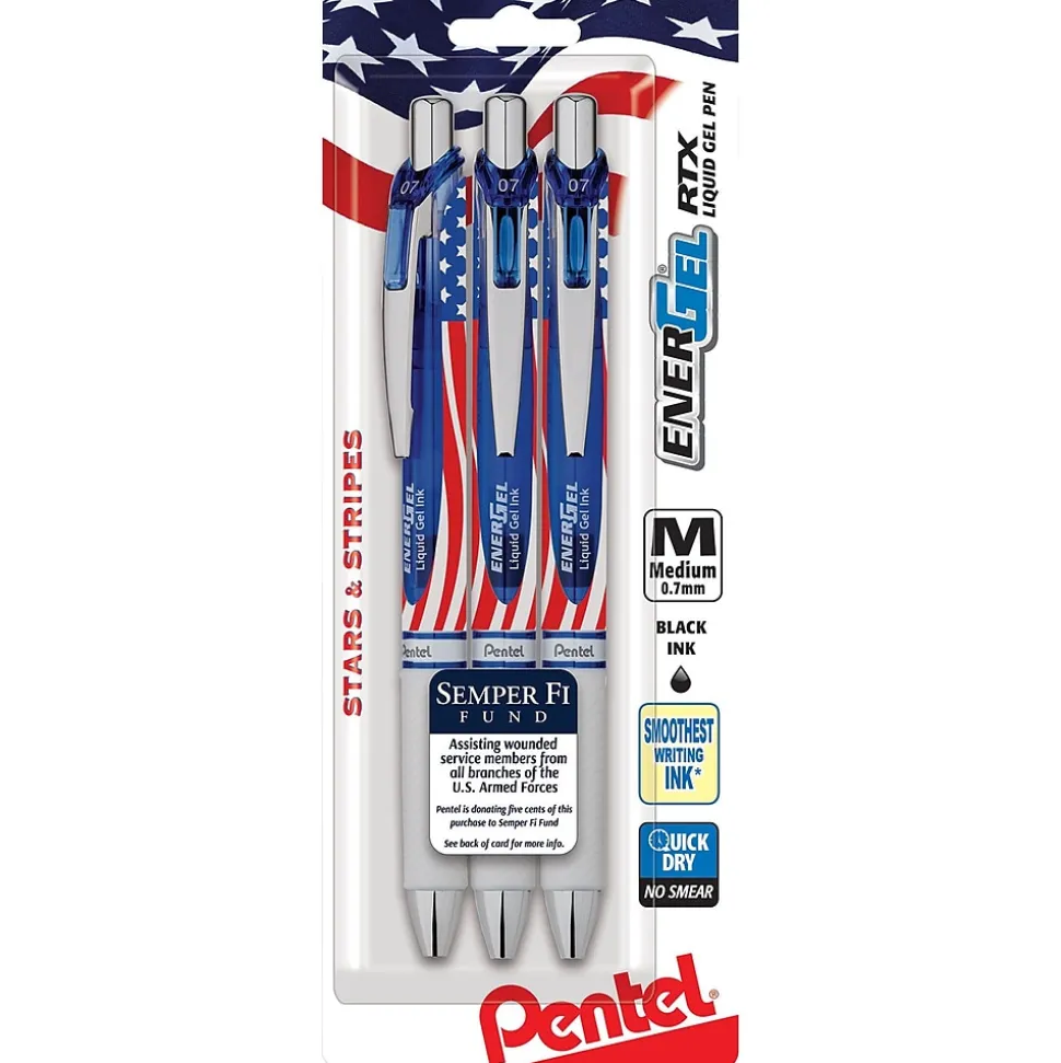 Pentel EnerGel RTX Gel Pen, Medium Tip, Black Ink, 3/Pack (BL77USABP3A)