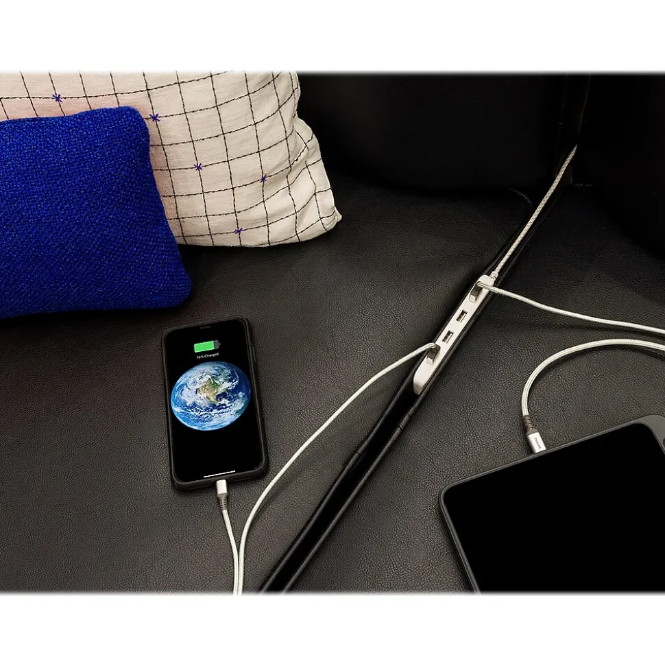 - 6′ cable provides enough length to reach power sources