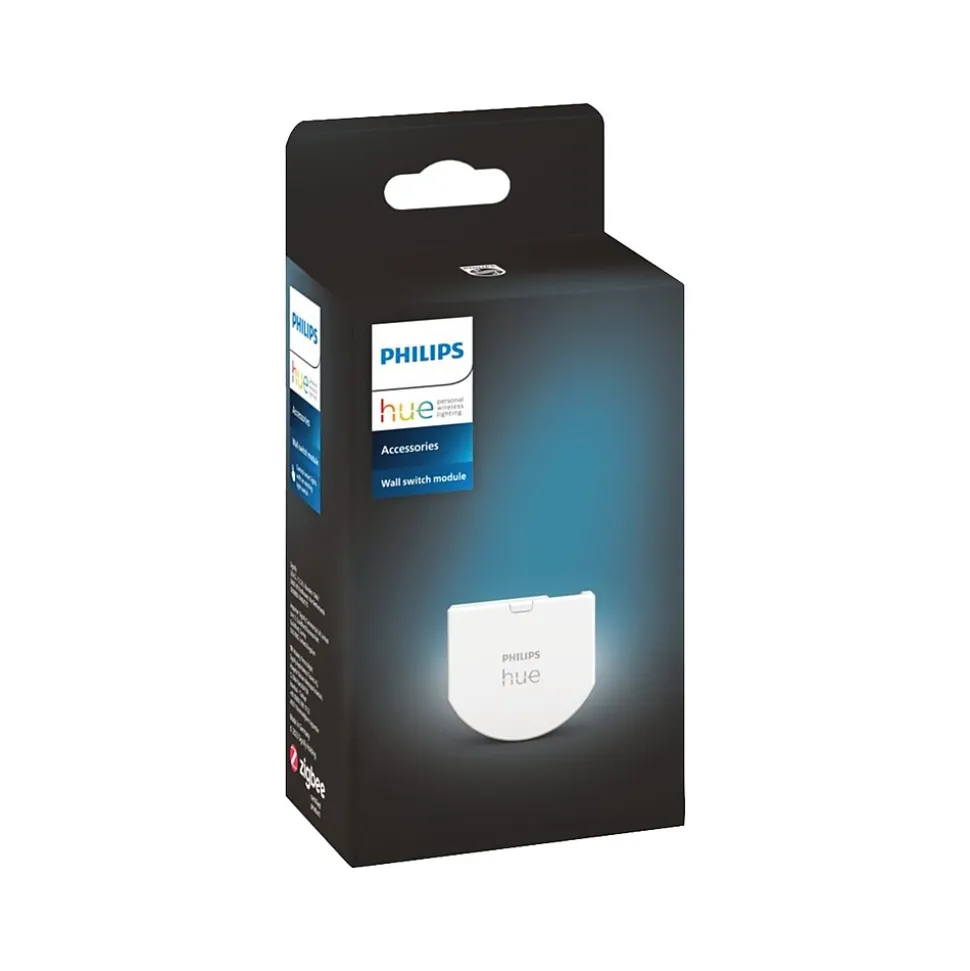 Installed behind light switches, the Philips Hue wall switch module lets you use existing switches with your Philips Hue smart lights. Your lights always stay powered on and reachable – and you can even use the switch to set multiple scenes on an individual light.