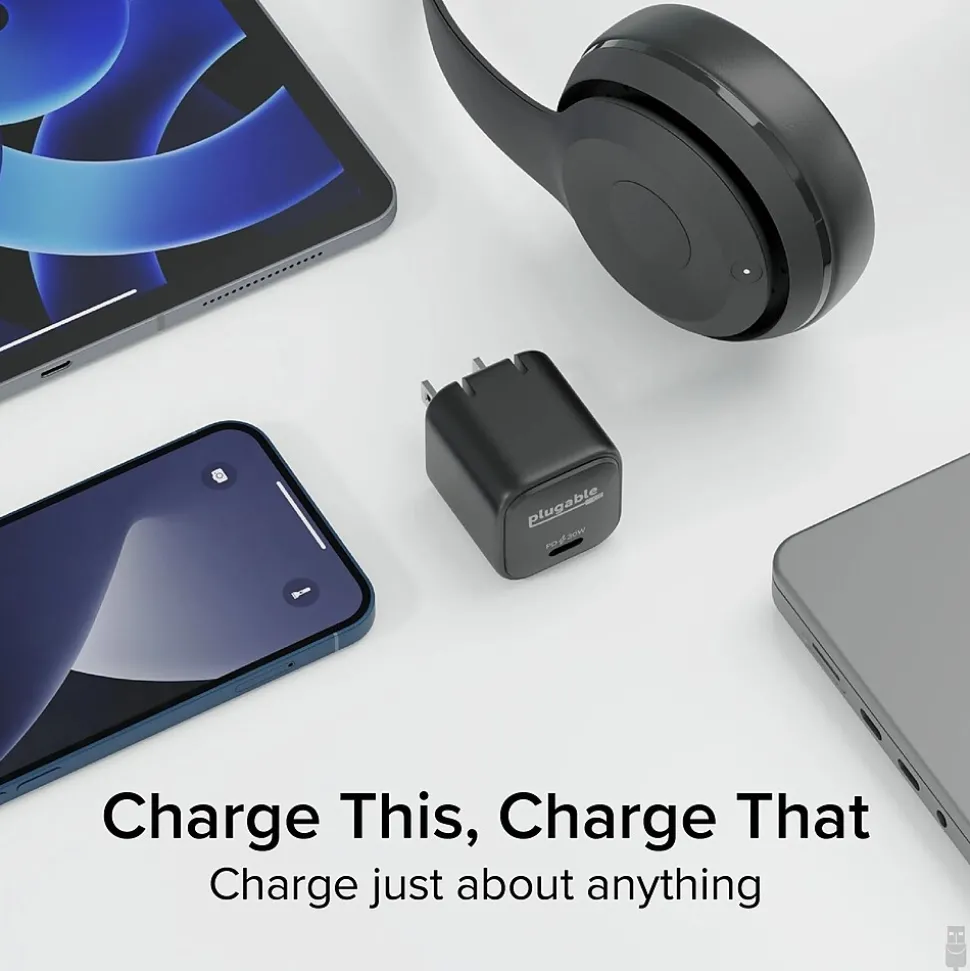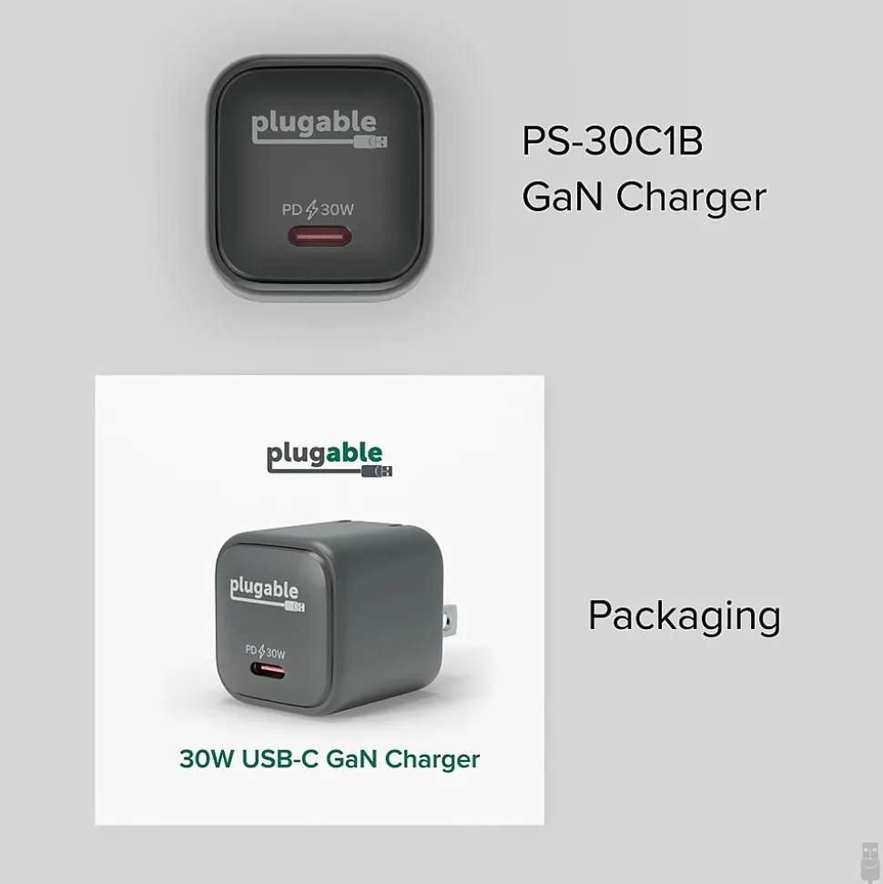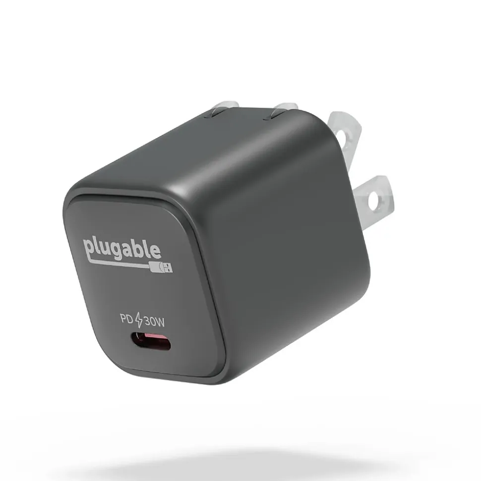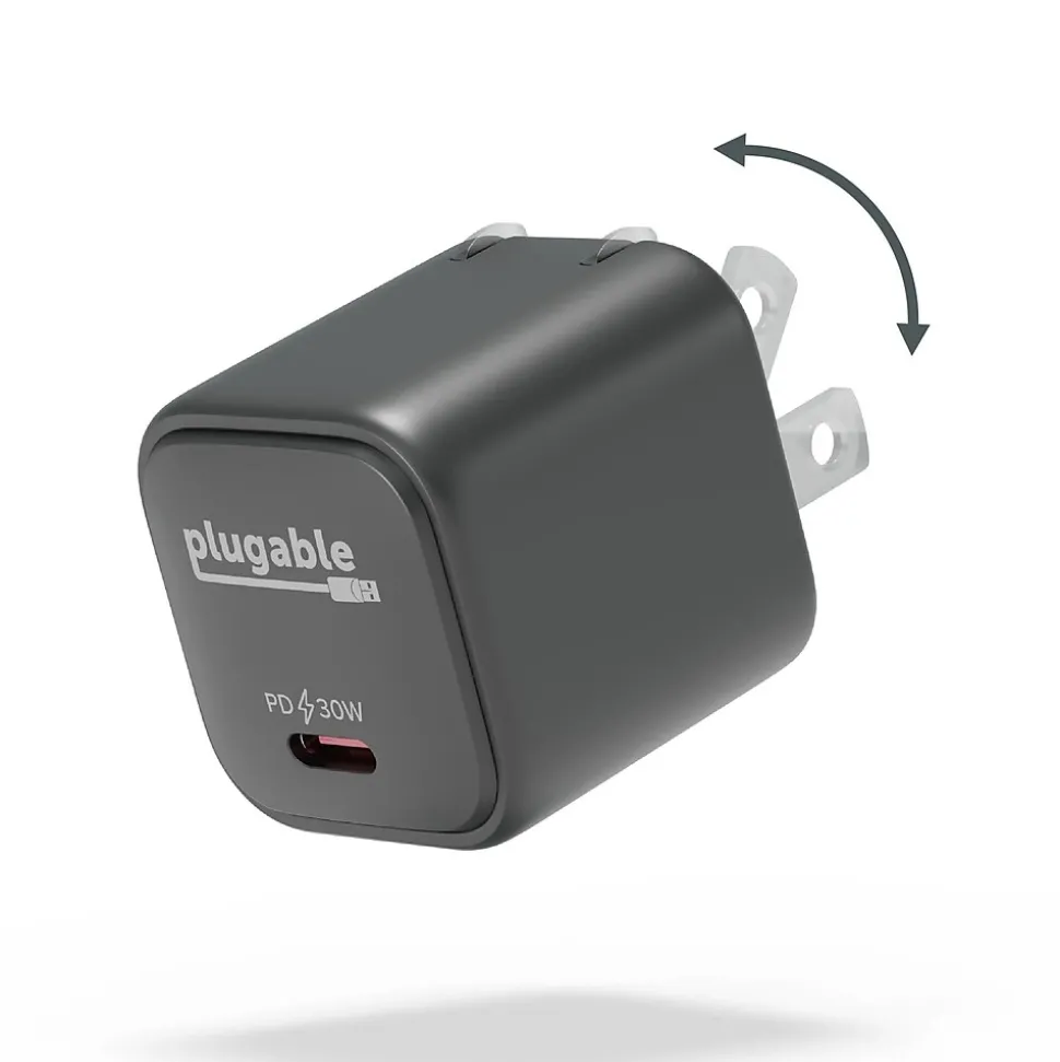 Plugable GaN USB C Charger Block, 30W Portable Charger, Foldable Prongs