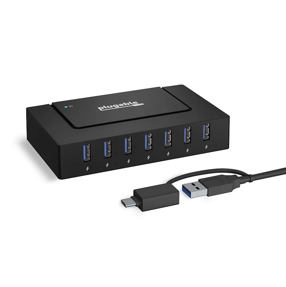 Plugable 7-in-1 USB Charging Hub with Data Transfer for Laptops with USB-C or USB 3.0 – Multiport Charging and USB Data Transfer – 60W Power Adapter
