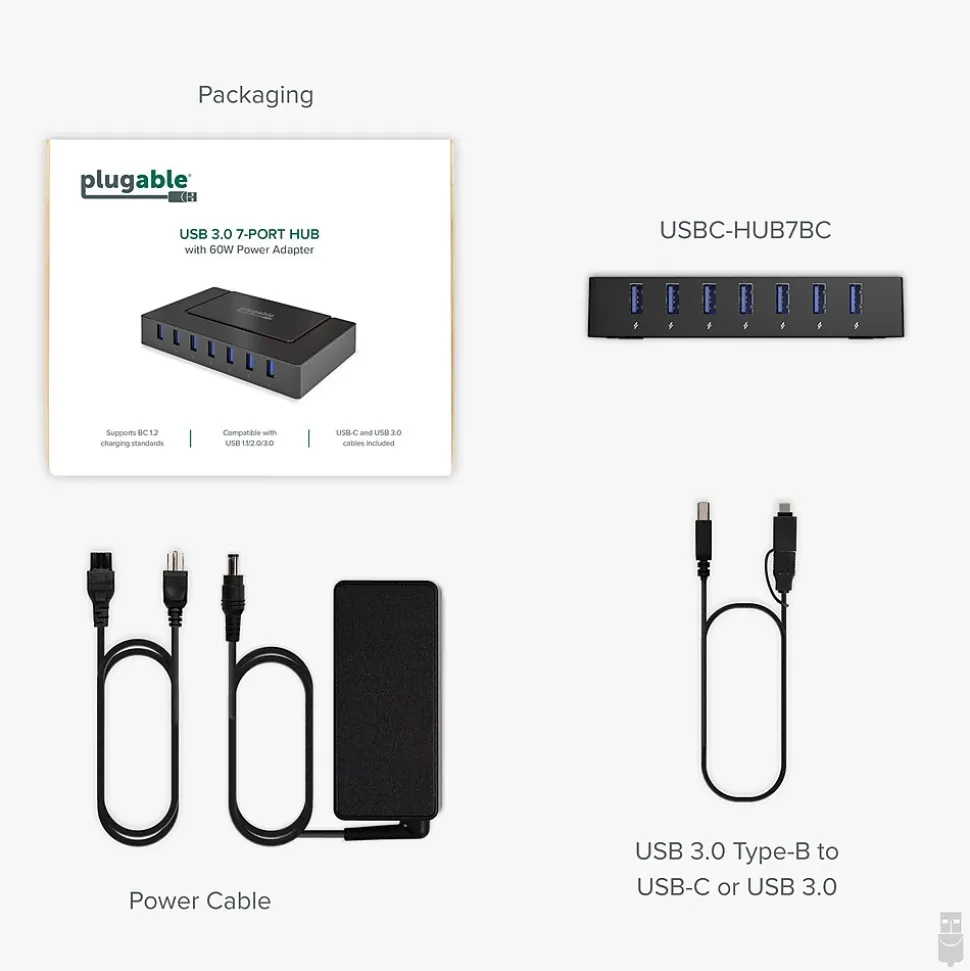 - Usb 3.0 And Usb-C Connectivity – Hybrid 2-in-1 cable adds extra USB ports where they’re needed most. Use as a USB 3.0 hub on older computers or USB-C hub on newer systems. Or, tap into the 60W power adapter and use as a standalone seven port USB charging hub