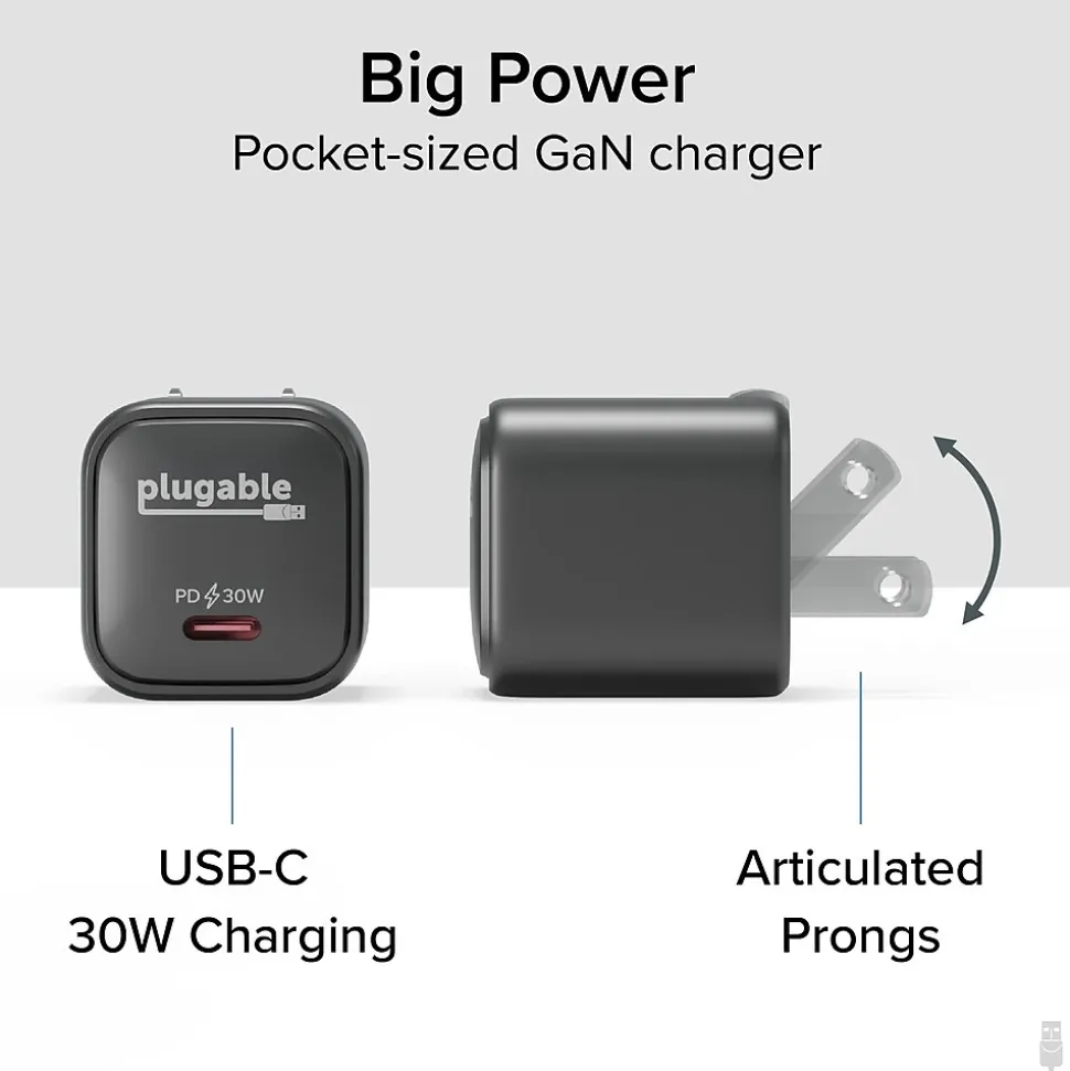 - Small but powerful 30W USB C wall charger intelligently provides up to 30W to rapid charge your phone, tablet, or USB-C peripherals