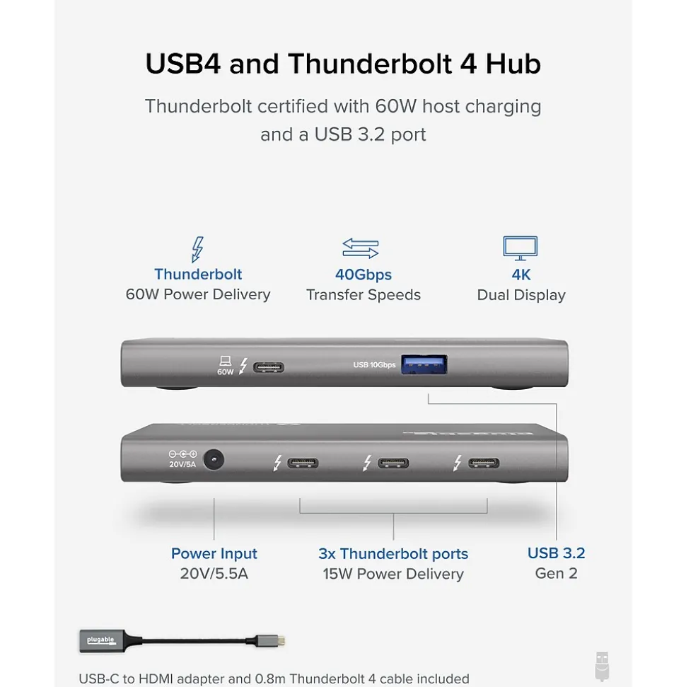 - This USB4 and Thunderbolt 4 Hub with 60W charging is Thunderbolt certified and built on the Goshen Ridge Chipset for maximum USB-C, USB4, and Thunderbolt 4 functionality