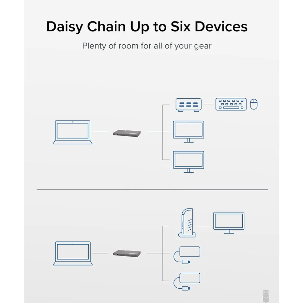 - Daisy-chain up to six Thunderbolt devices with this Thunderbolt hub to make room for all of your USB Type-C and Thunderbolt devices, or use as a stand-alone charger: no computer necessary