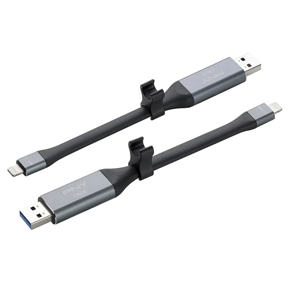 The PNY DUO LINK 128GB USB 3.0 OTG flash drive enables you to free up space on your iPhone and iPad, sync and share content between devices, back up contacts, download and store videos, photos, and more via the free, easy-to-use app while simultaneously charging your iOS devices.