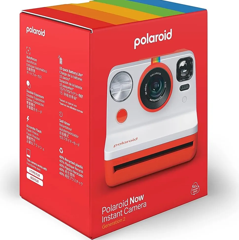 Capture real life with the classic. Welcome to the beautifully imperfect world of Polaroid photography with the Polaroid Now Generation 2 camera. The classic, iconic analog instant camera comes with autofocus, a self-timer, and double exposure. All in a classic design, and now made with 40% recycled materials. Compatible with Polaroid i-Type & 600 film in the original Polaroid instant film format. It’s made for real life.