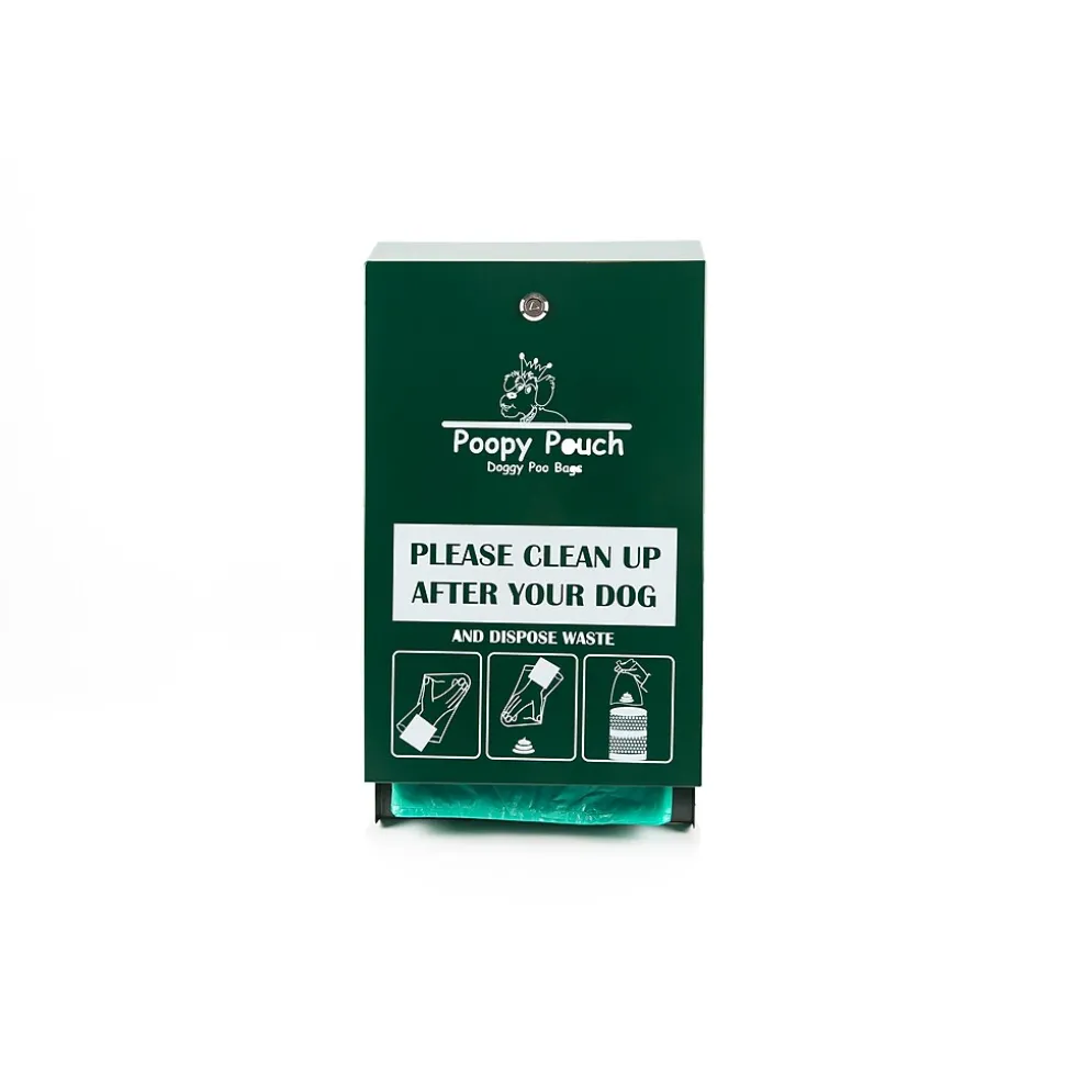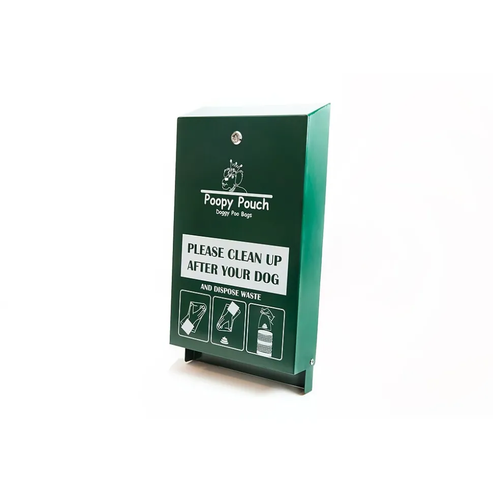 For those who want maximum storage at a minimum price, this locking header dispenser is made from durable, rustproof, powder-coated steel that lasts for years. An integrated sign reading “Please Clean Up After Your Dog” is screen-printed directly onto the dispenser. It holds up to 600 of our single pull bags that are flat packed and dispenses one bag at a time for longer refill intervals. The dispenser is designed for use with replacement bags #PP-H-200.