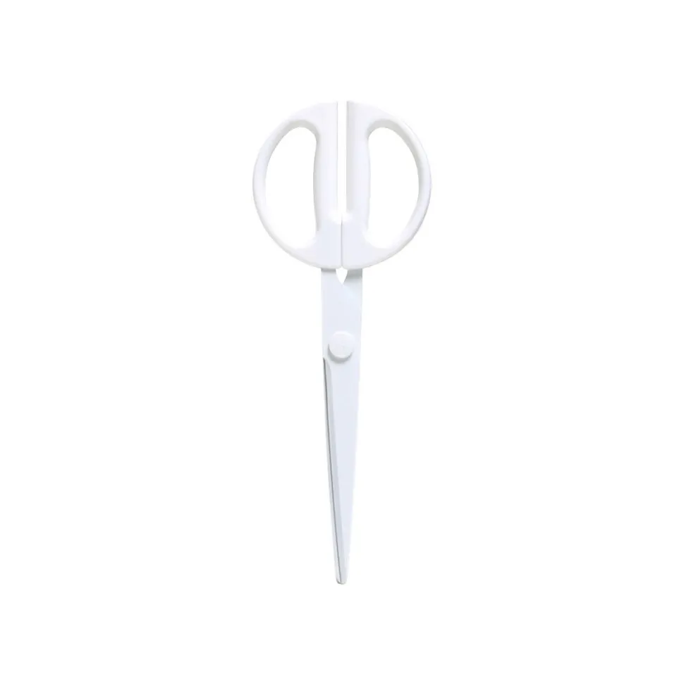 Cut effortlessly through art and craft materials with these white scissors. The round, molded handles offer precise control. These Poppin scissors have long, Teflon-coated blades that work smoothly on sticky surfaces.