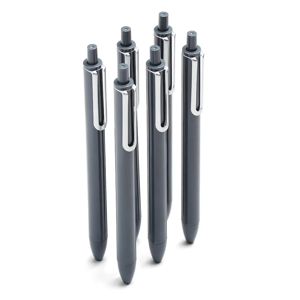 Fill out reports, medical forms and other paperwork with these gel pens. The pocket clips allow for convenient portability, so you can be prepared to take notes wherever you go, while the retractable feature hides the tips to protect documents from unintentional marks. These Poppin Luxe retractable gel pens come in dark gray and have fine-point tips for detailed writing.