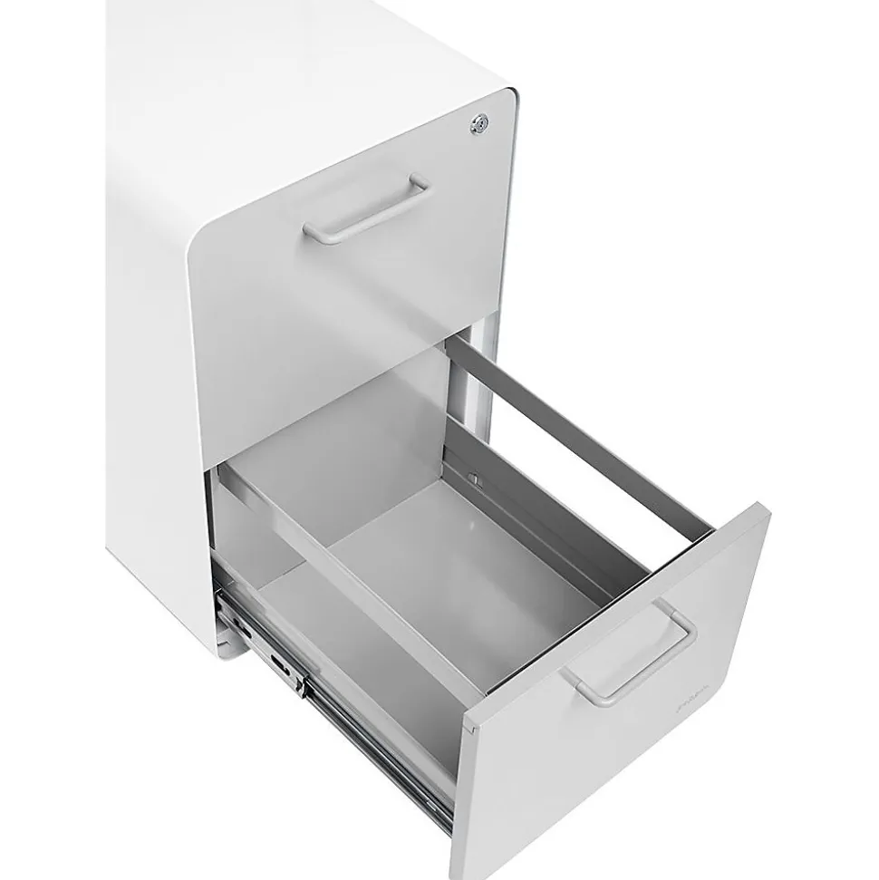 Our best-selling White + Light Gray Stow Rolling 2-Drawer File Cabinet features powder-coated steel construction with matching Light Gray painted steel interior keeps documents and doo-dads super safe. Locking drawers and attachable casters with a full 360 degrees swivel are bound to get you lockin’ and rollin’.