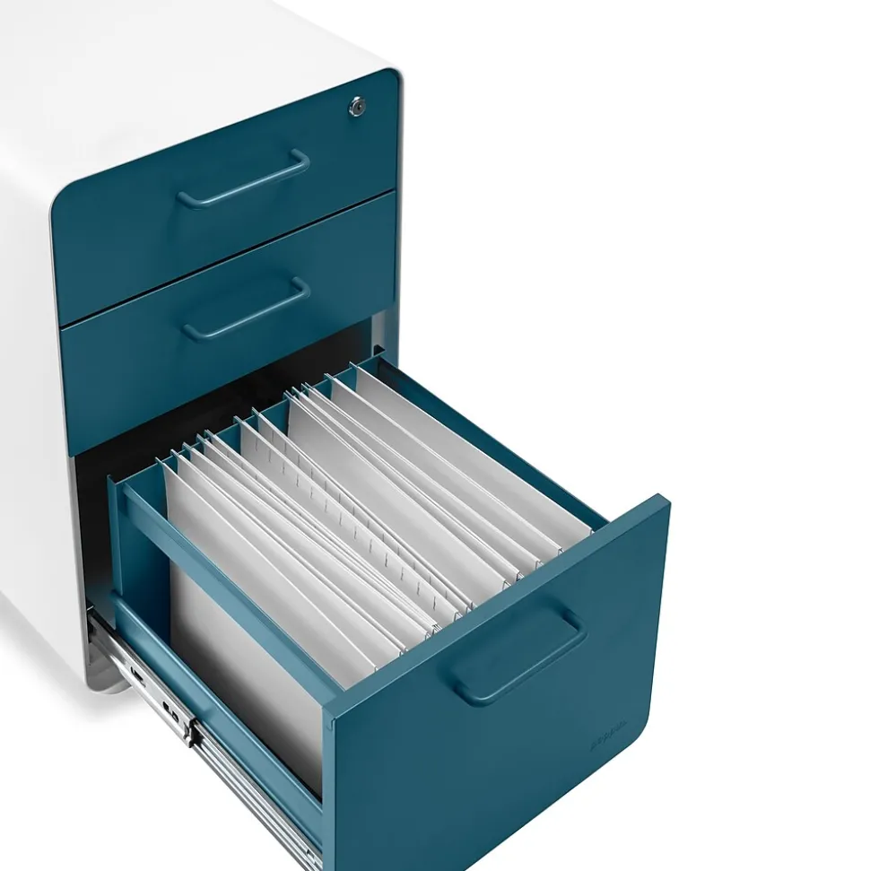 - Stow File Cabinet with durable powder-coated steel construction stands up to movers and shakers