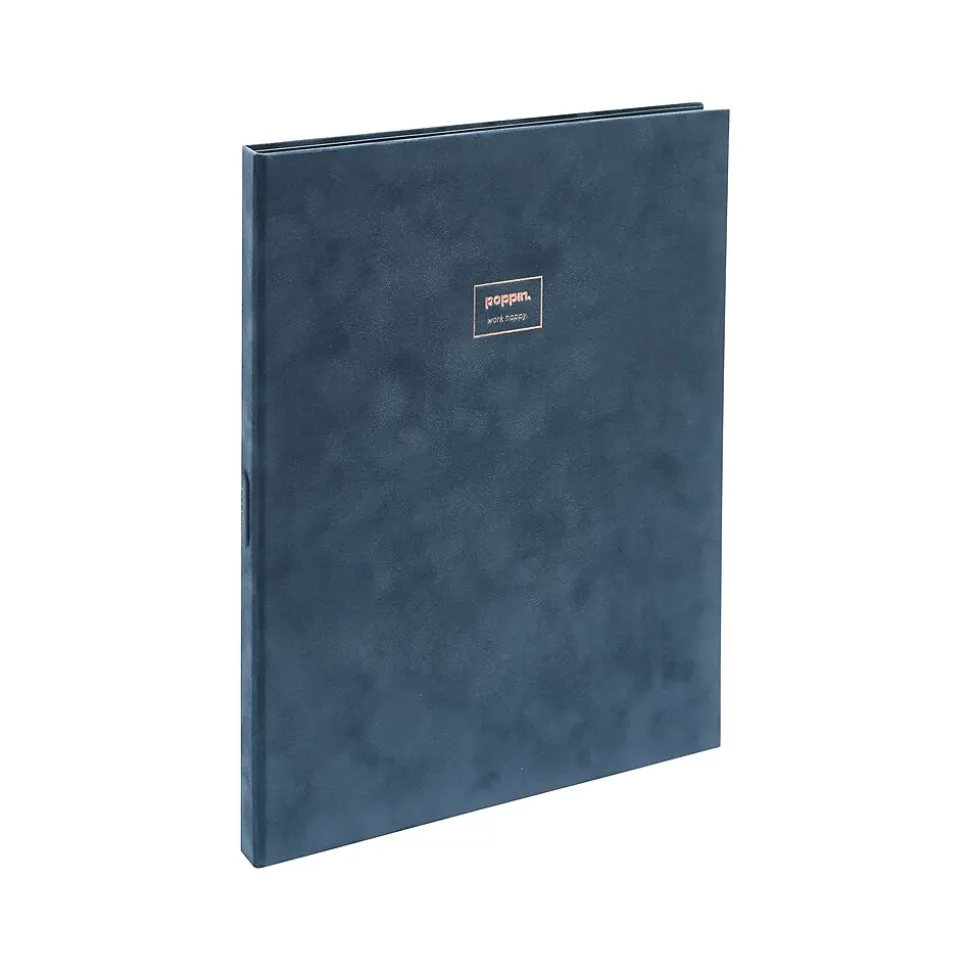 Make an impression during client meetings, interviews, and other appointments with this large padfolio. The velvet blue exterior provides a sophisticated, stylish look and feel, while the side pocket easily holds loose pages, resumes, or other documents. This Poppin Velvet large Storm padfolio has a silicone pen holder for added convenience and includes a writing pad, so you can quickly take notes.