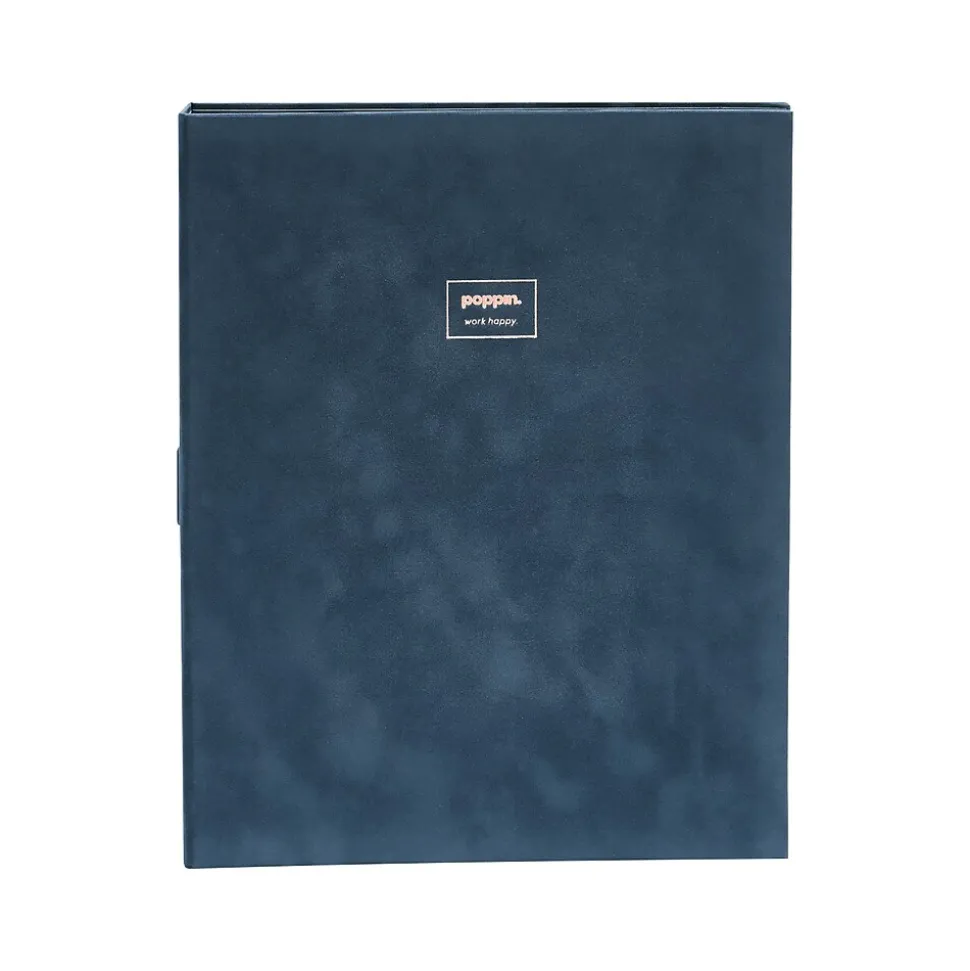 - Storm flocked paper cover has a velvet-like feel, and the foil-stamped Poppin logo adds a luxurious touch