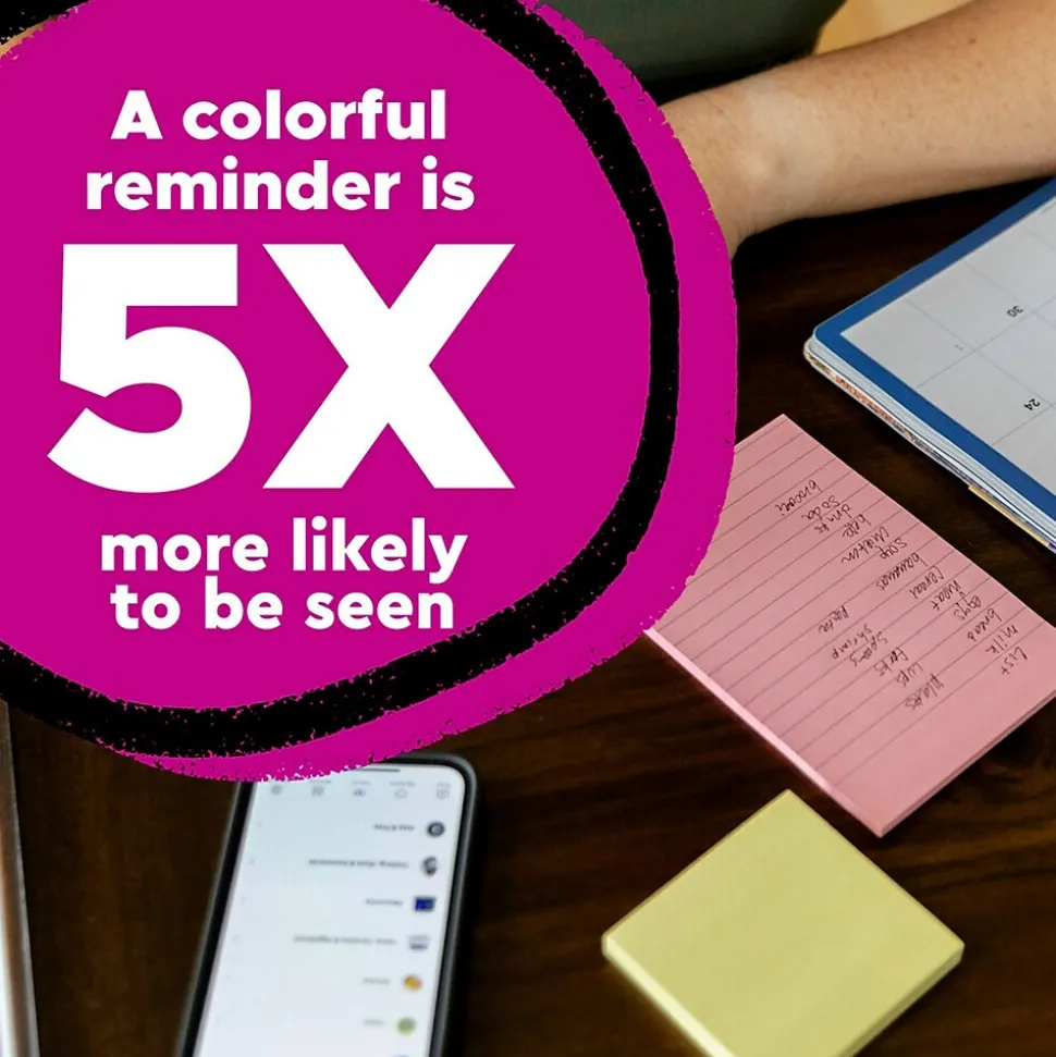 - NO SURFACE DAMAGE: Post-it Notes stick securely and remove cleanly; no tape or tacks are needed, and the adhesive backing of these reusable sticky notes allows for easy repositioning