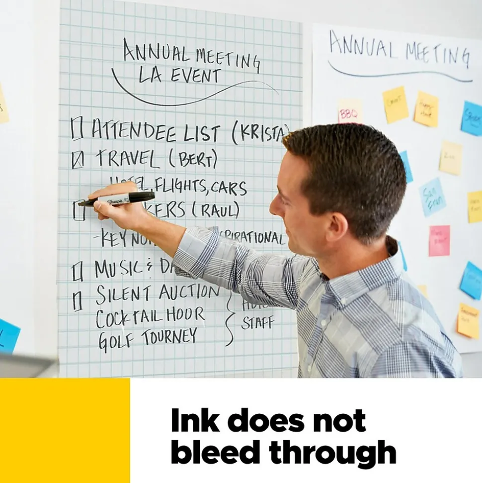 Ink-Bleed Through Resistant Paper – Large white recycled premium self-stick flip chart paper that resists marker bleed-through to keep great ideas on the page, not on what’s under the page. Made with 30% recycled material.