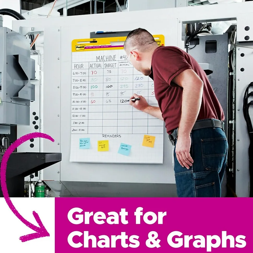 - Explore Options – Post-it® Super Sticky Easel Pads are also available with Grid Lines, Lines, Bright Yellow, and White Recycled Paper.