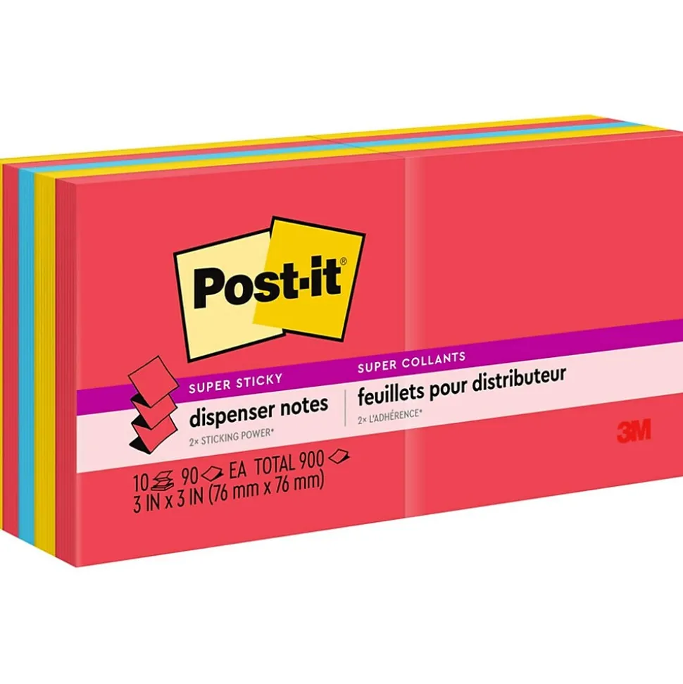 Add joy to the day alongside celebrated rainbow hues from the Playful Primaries collection. Whether jotting down your daily to-do’s, brainstorming big ideas, studying or setting reminders, colors and ideas are always brighter together. These sticky notes feature 2X the sticking power and are accordion-style notes that work to refill Post-it Note Dispensers. They also stick and re-stick – allowing you to move your notes with you throughout your day. They’re ideal for walls, doors, windows and other vertical surfaces, and like all Post-it Notes, they stick securely yet remove cleanly without damage. Keep your ideas across your notebooks, classroom books, calendars or other documents. No tape or tacks are needed with adhesive notes, saving you money and time on office products or school supplies. A great memo pad, these are ideal for using for notes or reminders to yourself or others. Post-it Super Sticky Notes are the perfect solution for shopping lists, reminders, notes on computer screens, time tracking, to-do lists, marking cables, color-coding documents, reminding kids to do chores, storyboarding, scratch paper and agile processing. Each notes sheet is approximately 3 in. x 3 in., with 90 sheets per pad and 10 sticky note pads per pack. These colorful sticky notes include colors from the Playful Primaries collection including red, yellow and blue. All Post-it Notes are sourced from certified, renewable and responsibly managed forests, and all Post-it Notes are recyclable, so you can recycle them when they are no longer needed.