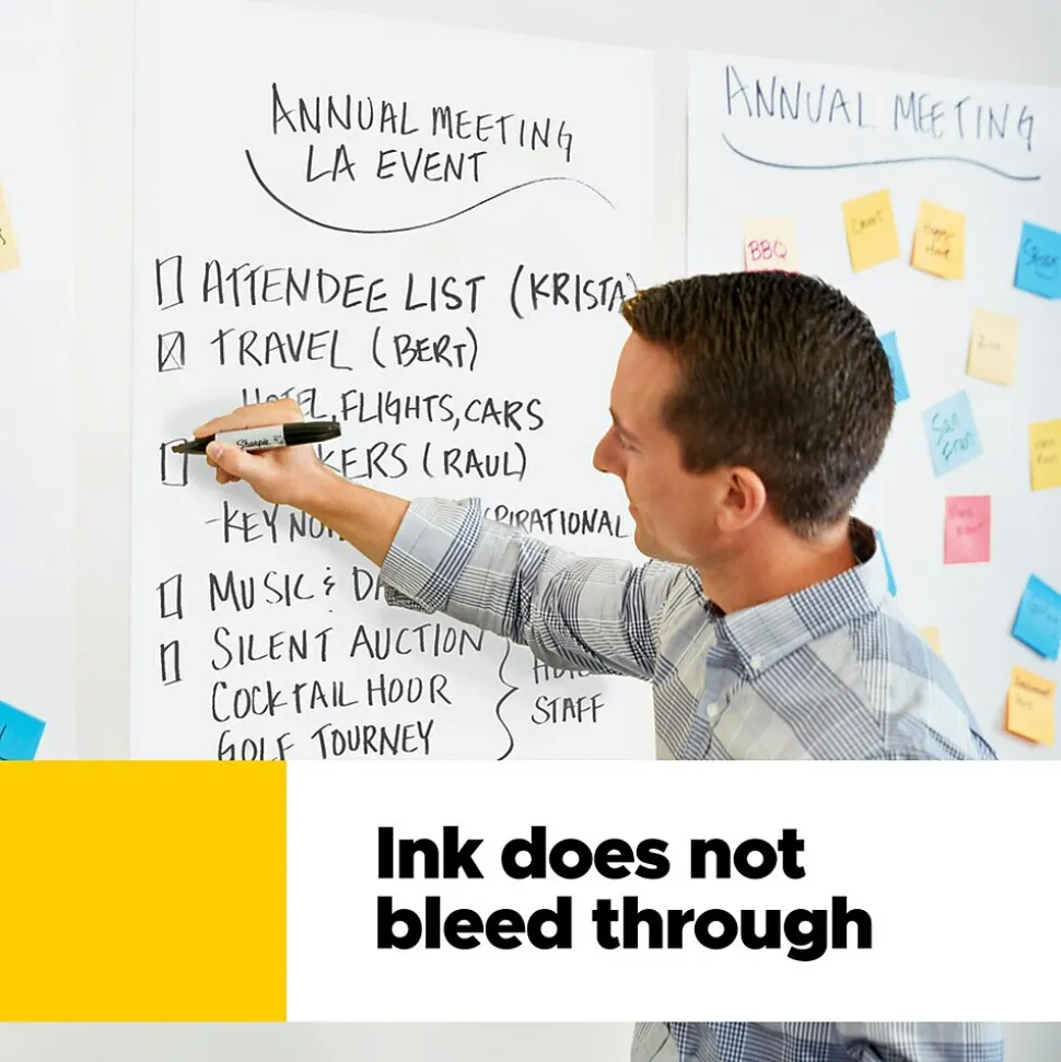 - INK BLEED-THROUGH RESISTANT PAPER – Large white premium self-stick flip chart paper that resists marker bleed-through to keep great ideas on the page, not on what’s under the page