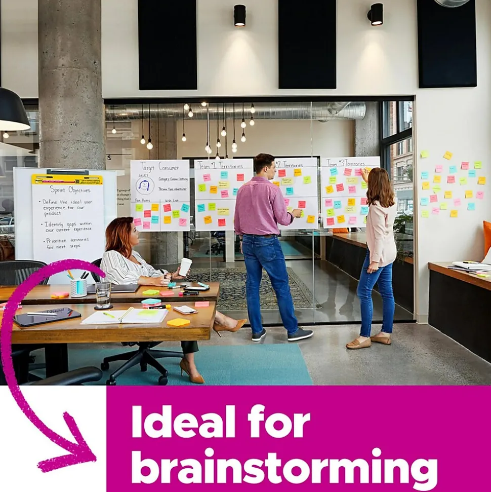 It’s an amazing feeling when your team just clicks-everyone feels a shared drive toward success. But, how do you ignite that feeling on every team? Capture the spark at your next meeting with Post-it Super Sticky Easel Pads. Adhesive backed sheets stick and re-stick to hold up to 2X longer to most wall surfaces, unlike flip chart paper. The paper resists marker bleed through so you can capture input by writing directly on the sheet. Use with Post-it Super Sticky Notes to organize ideas. Download the free Post-it App to instantly capture and save your work so you can share notes with the team without recaps or delays.