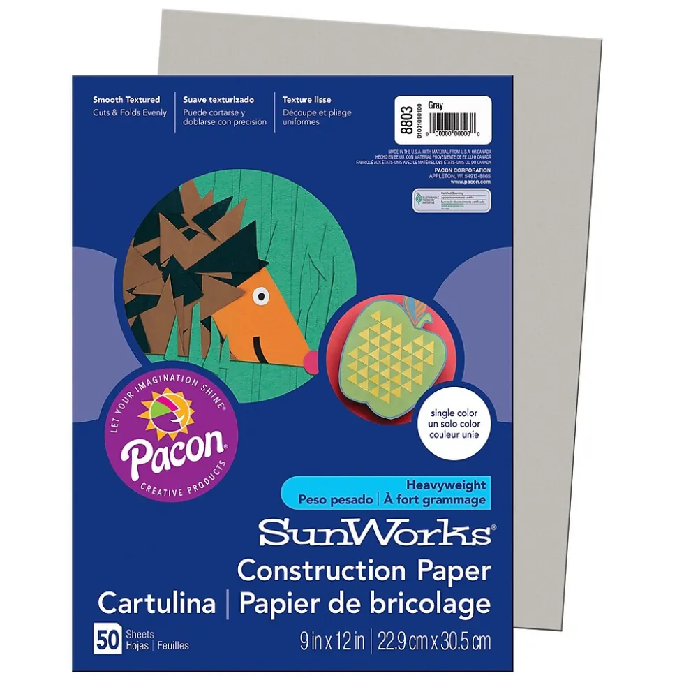SunWorks® Heavyweight Groundwood Construction Paper provides the best value in school grade construction paper. It is the perfect solution for school projects and other arts and crafts. It has bright and consistent colors, is slightly textured and cuts and folds evenly without cracking. Recyclable. Measures 9″ x 12″. Each pack includes 50 sheets. Sold as 10 packs for a total of 500 sheets.