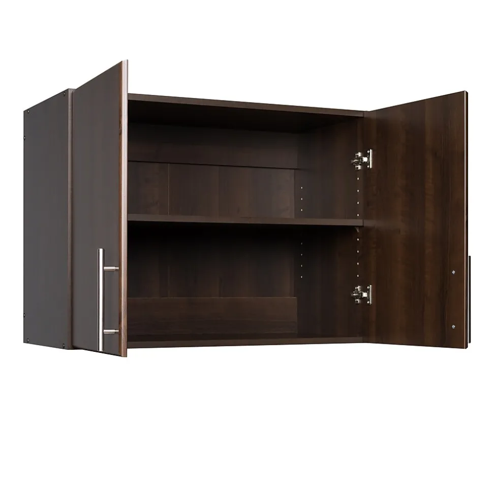 Modern, elegant and practical, the 32” Elite Stackable Wall Cabinet brings functionality without compromising on style. The rich espresso laminate flawlessly integrates with any space or décor. With one fixed and one adjustable shelf, The Elite Wall Cabinet is a great choice for any kitchen, entryway, laundry room, or anywhere else you may need some extra storage space. This item can be wall mounted alone or paired with the Elite Storage Cabinet in espresso to extend your storage space to 89 inches high. Position multiple cabinets side by for a complete storage solution.