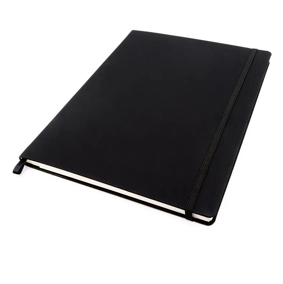 - Features an elastic fastener and ribbon bookmark