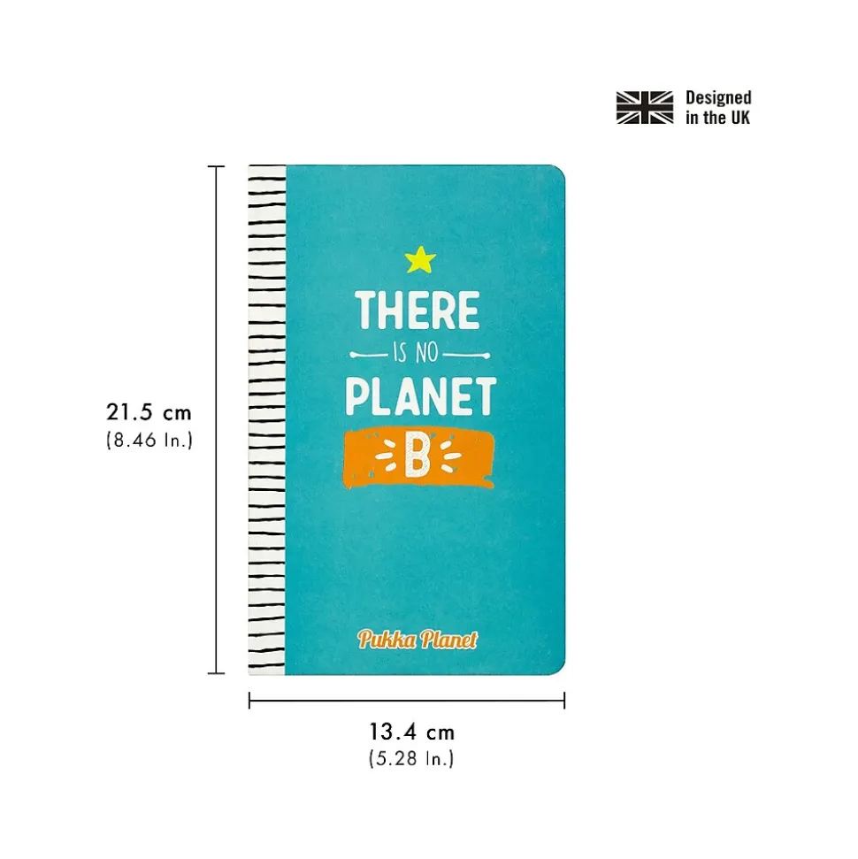 - Bright blue softcover with There Is No Planet B writing makes you feel fancy