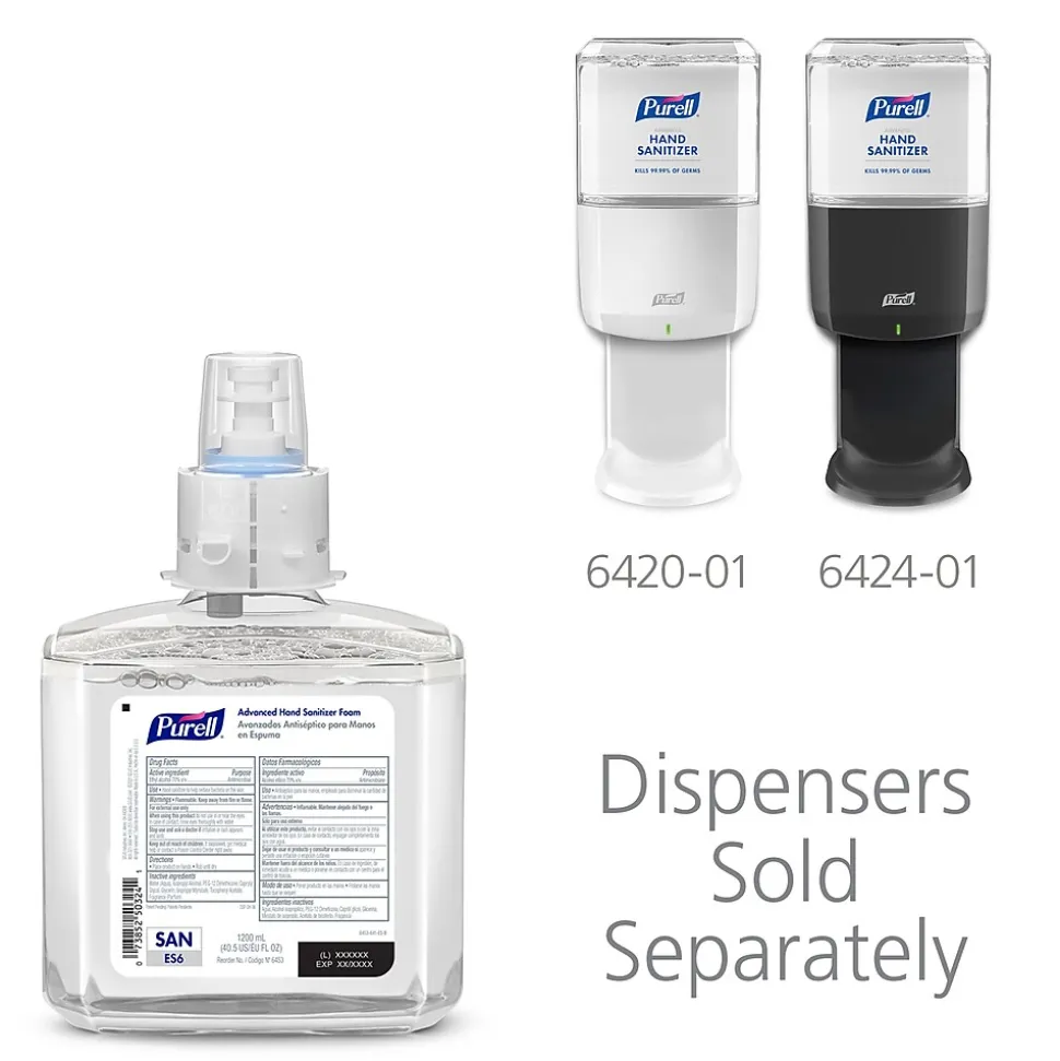 - Case Includes: 2 – PURELL Brand Advanced Hand Sanitizer Foam, 1200 mL Refills for the ES6 Automatic Hand Sanitizer Dispenser; ES6 dispensers (SKUs 6420-01 and 6424-01) are sold separately.