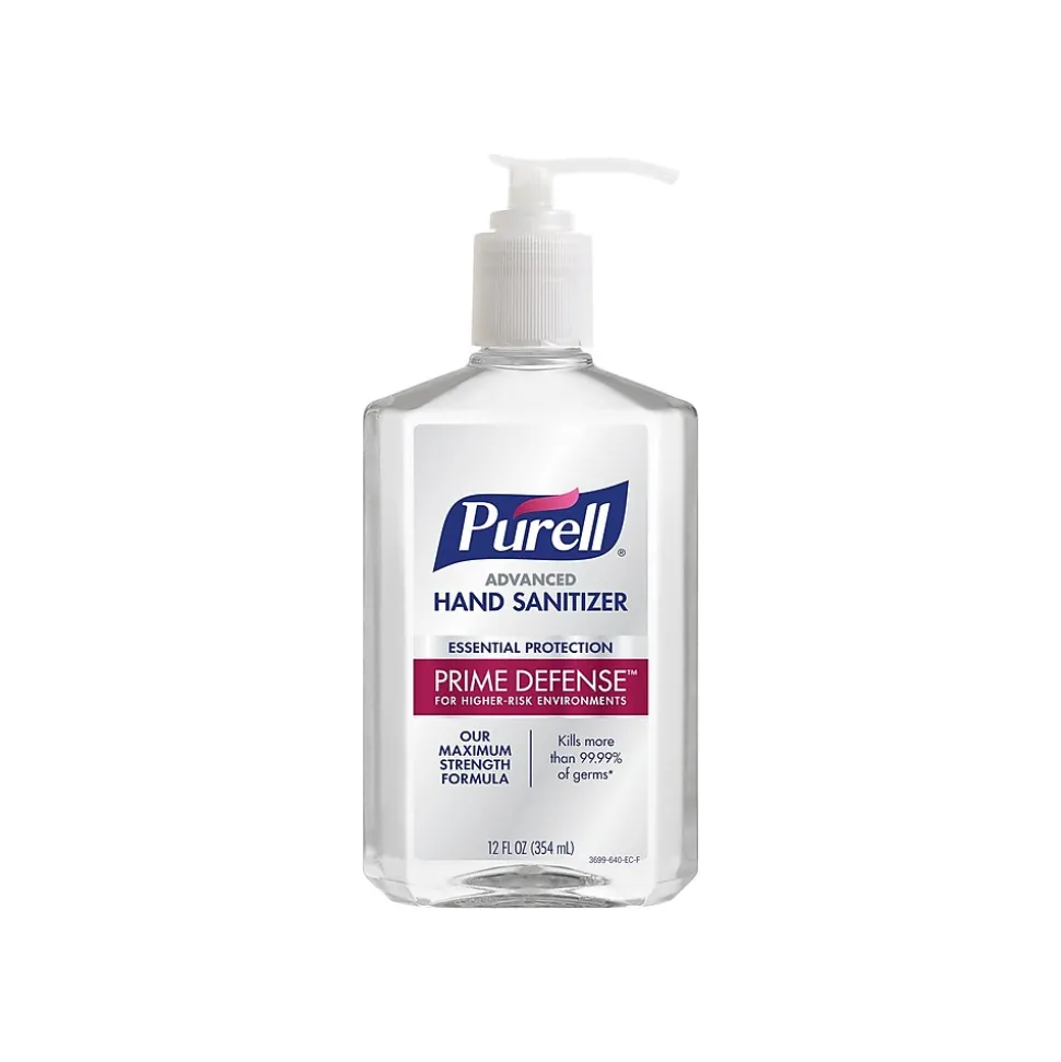 Originally designed for close-quarter settings with higher risks, PURELL PRIME DEFENSE⢠Advanced Hand Sanitizer has the efficacy necessary for urgent needs as well as your everyday life. Our maximum strength formulation features 85 percent ethyl alcohol and advanced technology that breaks down germ cell walls. This professional-grade hand sanitizer kills a wide range of germs with more than 99.99 percent efficacy. Hands feel clean and refreshed after every use. Perfect to strategically place in offices, small businesses, and work-from-home environments.
