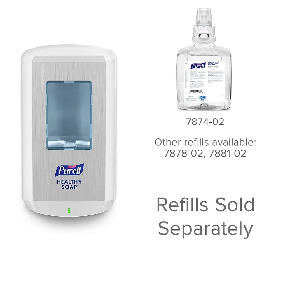 - Case Includes: 1 ā PURELLĀ® CS8 Automatic Soap Dispenser in White with included adhesive tape or hardware to mount to wall (refills sold separately)