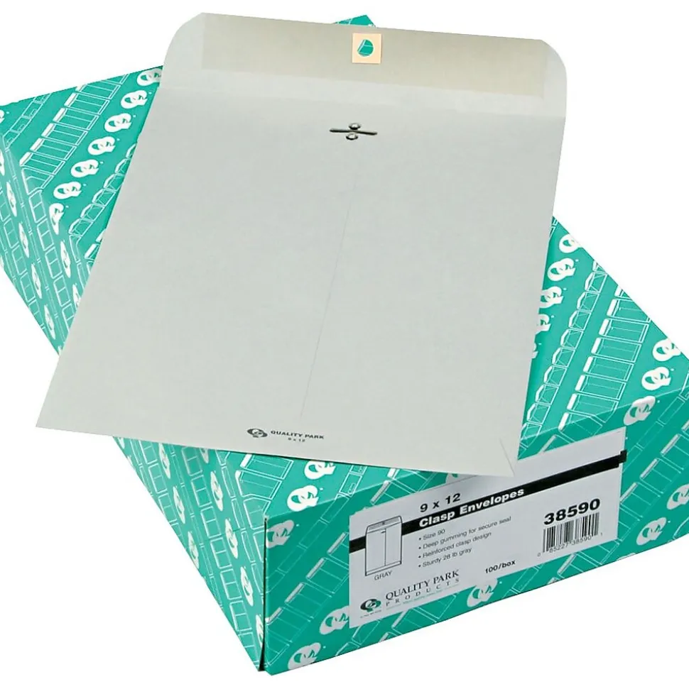 Quality Park Gummed Clasp Envelopes, 9″ x 12″, Gray, 100/Bx