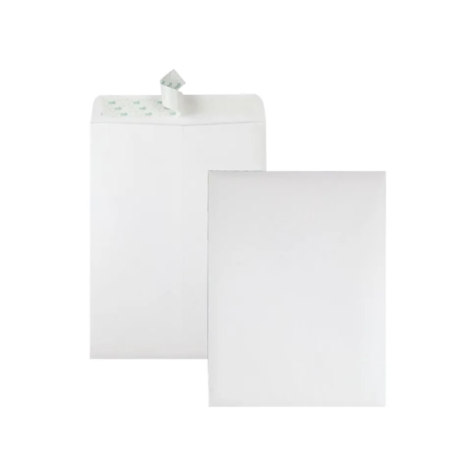 Keep statements, invoices, and other important paperwork secure with these white envelopes. Made of durable 28-pound paper, these white wove envelopes protect contents from moisture, ripping, dirt, and other damage. The Redi-Strip seal allows you to easily seal the envelopes without moisture. These Quality Park catalog envelopes open on the long side for easy retrieval and insertion of contents.
