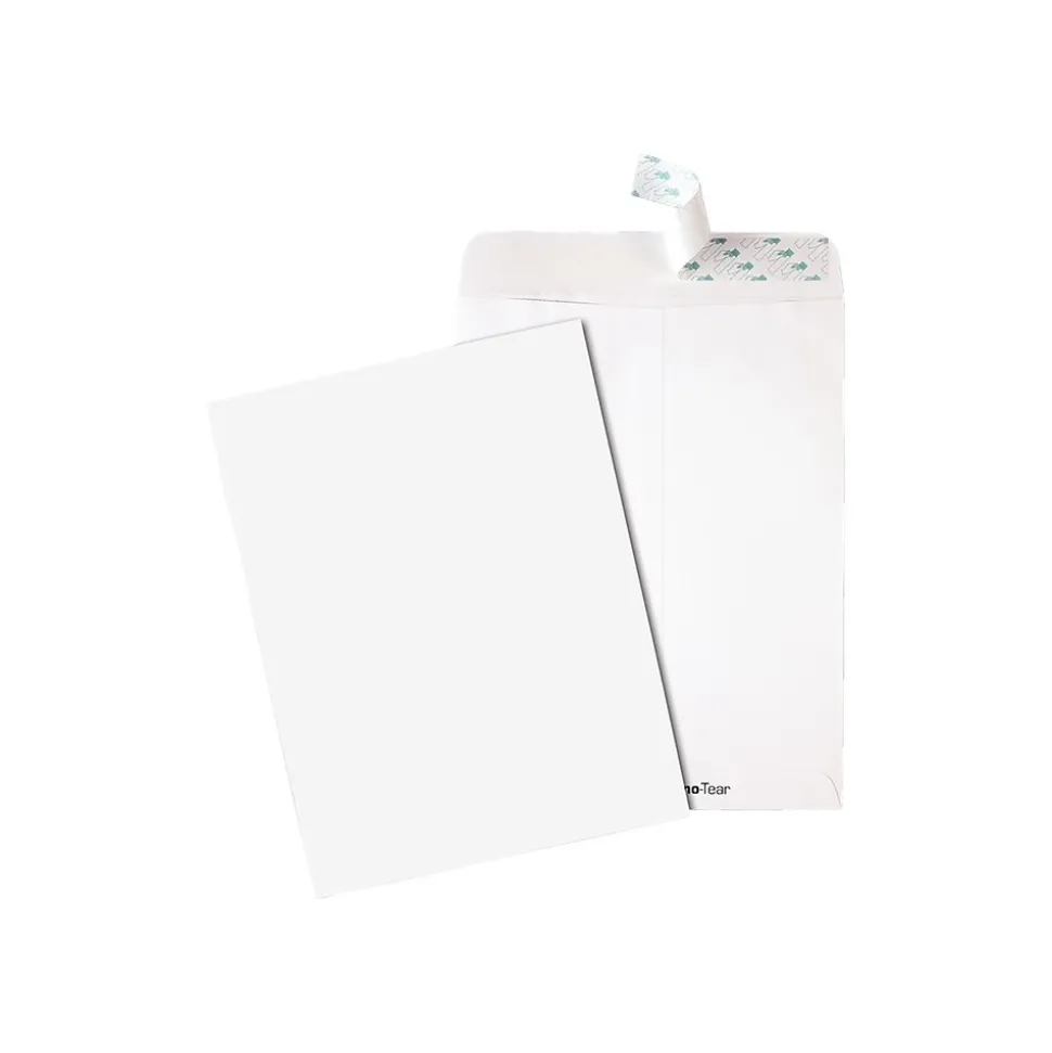 Ensure your important paperwork is secure and protected with these self-sealing envelopes. Constructed of durable poly, these envelopes offer maximum protection from rips, moisture, dirt, and other potential damage. These Quality Park Tech-No-Tear Redi-Strip white catalog envelopes are self-sealing, allowing you to seal the closure without moisture.