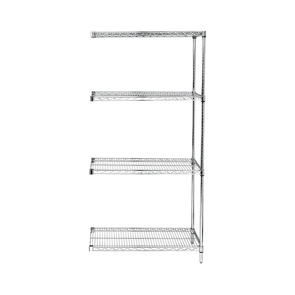 Increase the storage capacity in your closet or supply room with this shelving add-on kit. The shelves have a weight capacity up to 600-pounds, which makes them ideal for heavy tools, and the open design provides adequate ventilation. This Quantum Storage Systems wire shelving unit has a chrome finish for a professional appearance.
