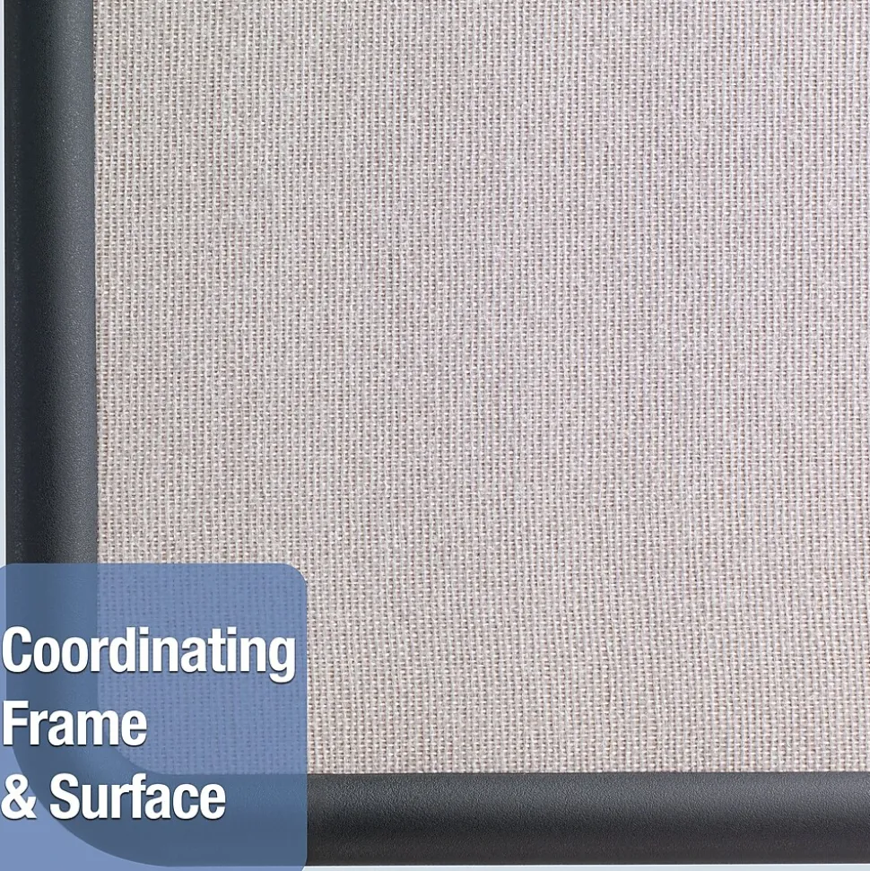 Hang this Quartet Contour 2′ x 3′ bulletin board in high-traffic areas for an easy way to display flyers, notices, and more. The durable gray woven fabric surface is self healing and backed by high-density fiberboard to keep pins secure even after repeated use. This bulletin board features a lightweight, gray, plastic frame with rounded edges.