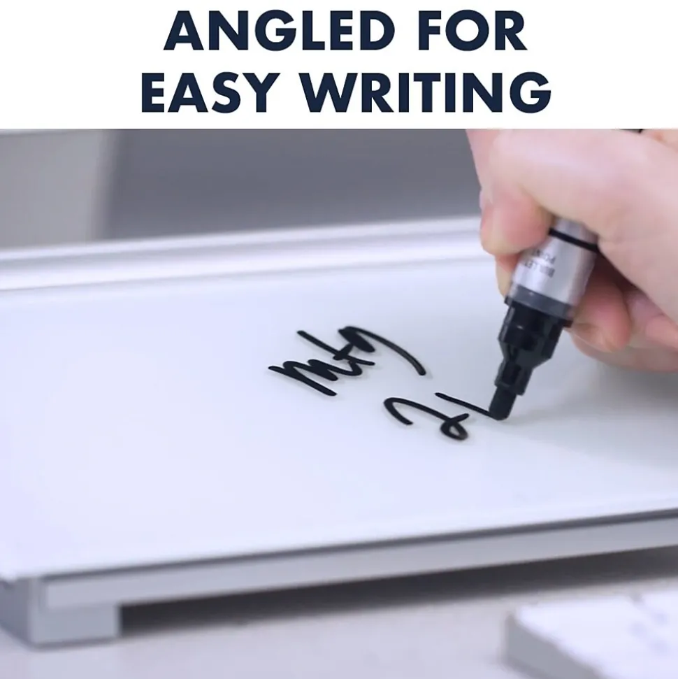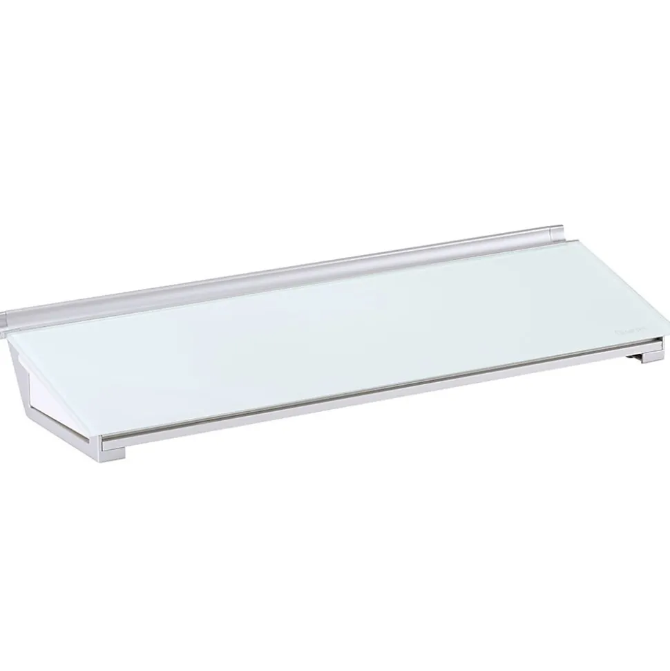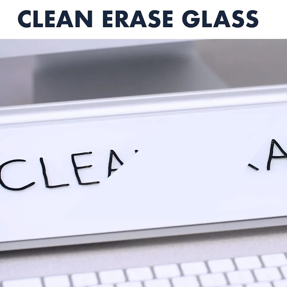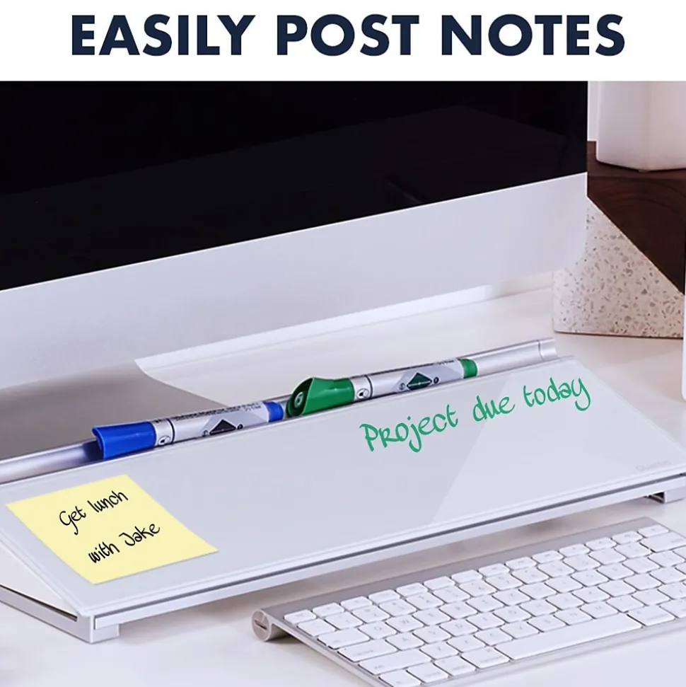 Slide this white dry-erase computer pad between your keyboard and monitor to take written notes while you work. The built-in drawer and top rail keep markers and supplies within reach, and the angled surface makes writing more comfortable. Wipe the glass surface clean in seconds when you’re done to leave a smooth blank space for future note-taking. This Quartet computer pad is frameless to minimize bulk.