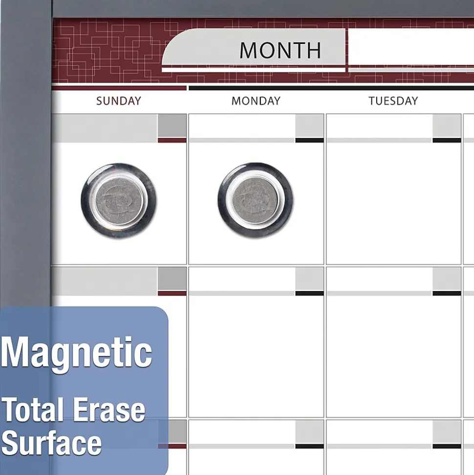 Use the online templates to build your custom whiteboard. Build from scratch or choose from the many pre-existing planner board, dry-erase calendar, workflow chart, and personnel board template designs. Being wiped the surface stays clean with no ghosting or staining. The 37.5 x 23-inch dry-erase surface is durable and magnetic. Pass-thru mounting system allows board to hang vertically or horizontally. Built-in marker tray and dry-erase marker are included.