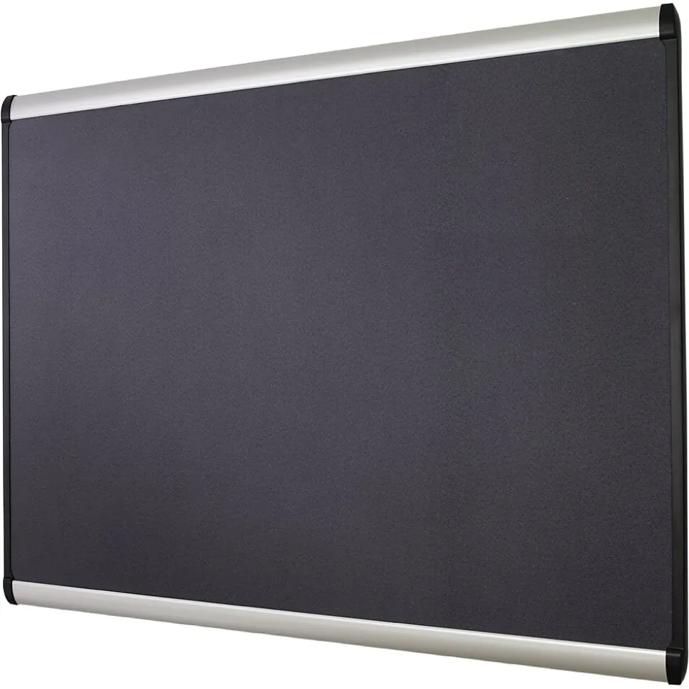 Make more out of your wall space when you use this mahogany finish framed bulletin board to create a quick and convenient display of important documents, notes, memos, and more. This Quartet Prestige Plus 4′ x 6′ bulletin board accepts pins or magnets to secure items thanks to the unique magnetic fabric surface. The surface is made from a durable fabric that will not crumble or fade with a high-density backing that holds pins tight. Set up takes not time at all with the Easy Mount hardware, magnets, and quick clips included.