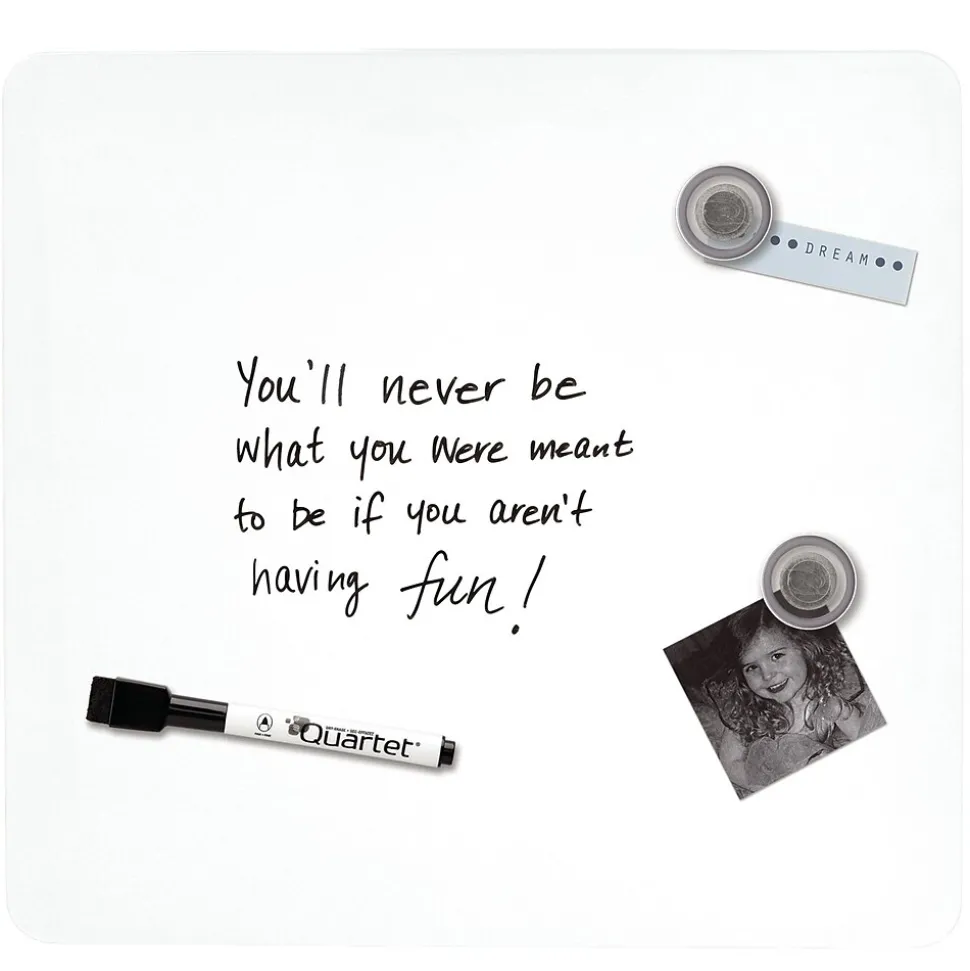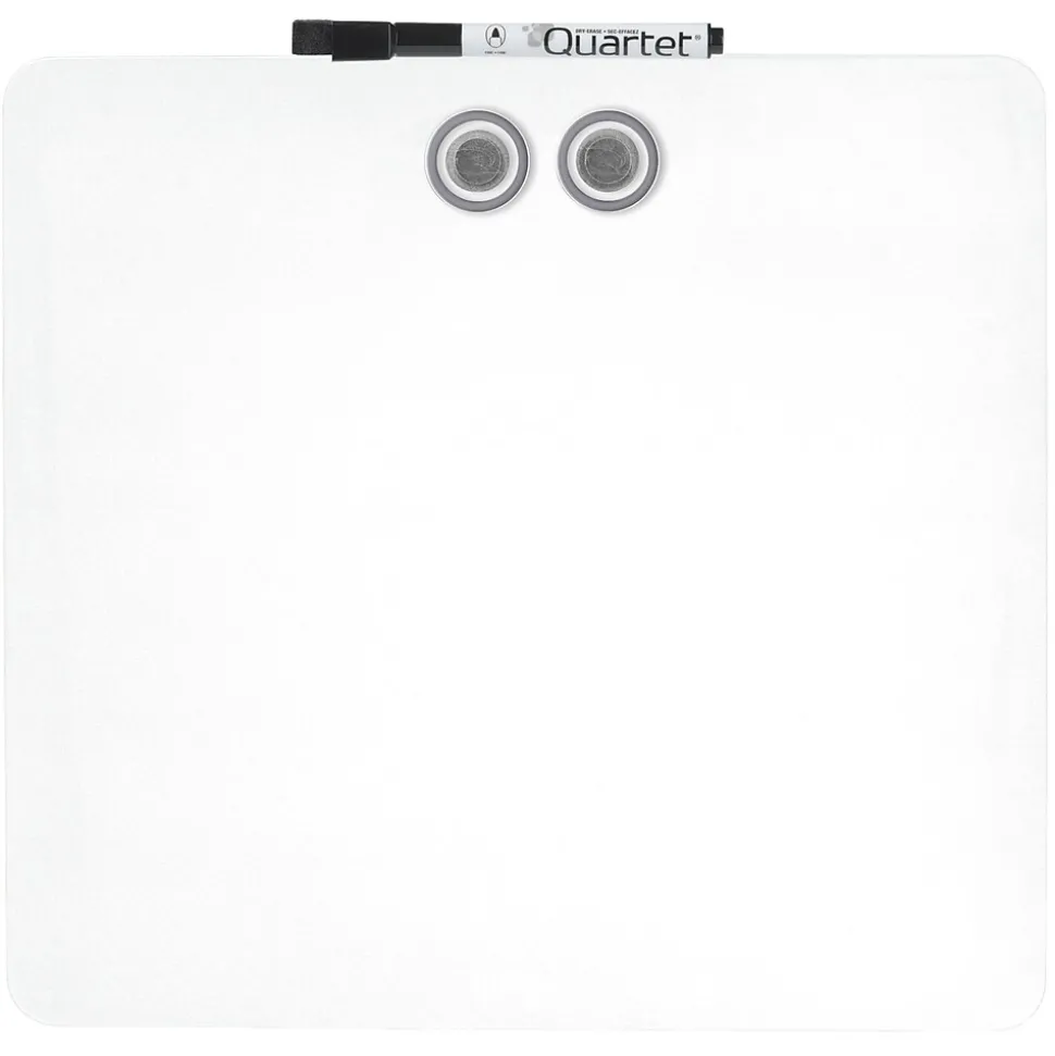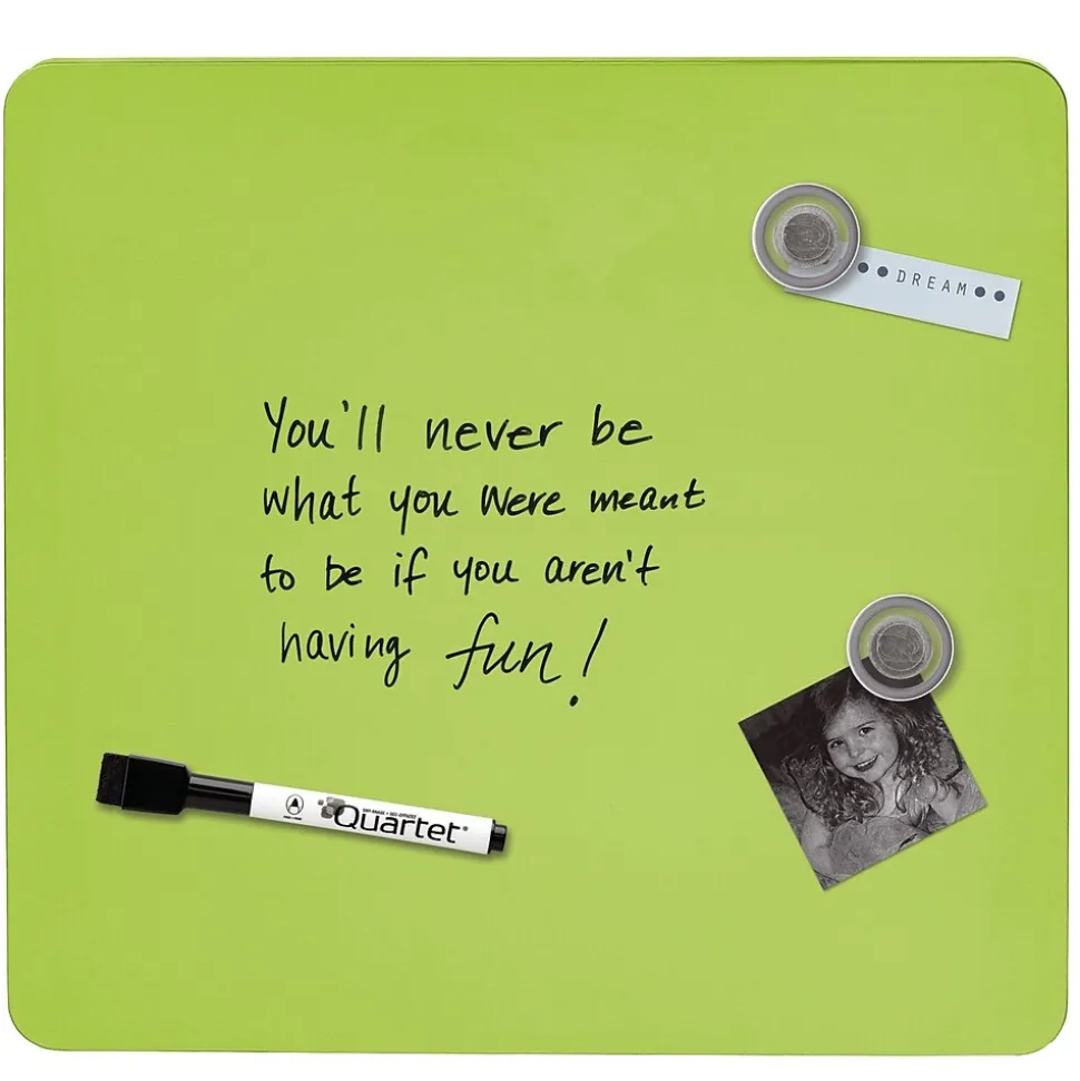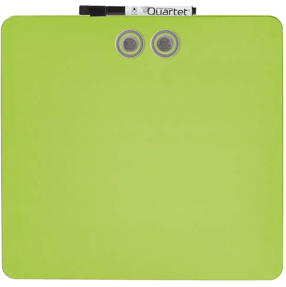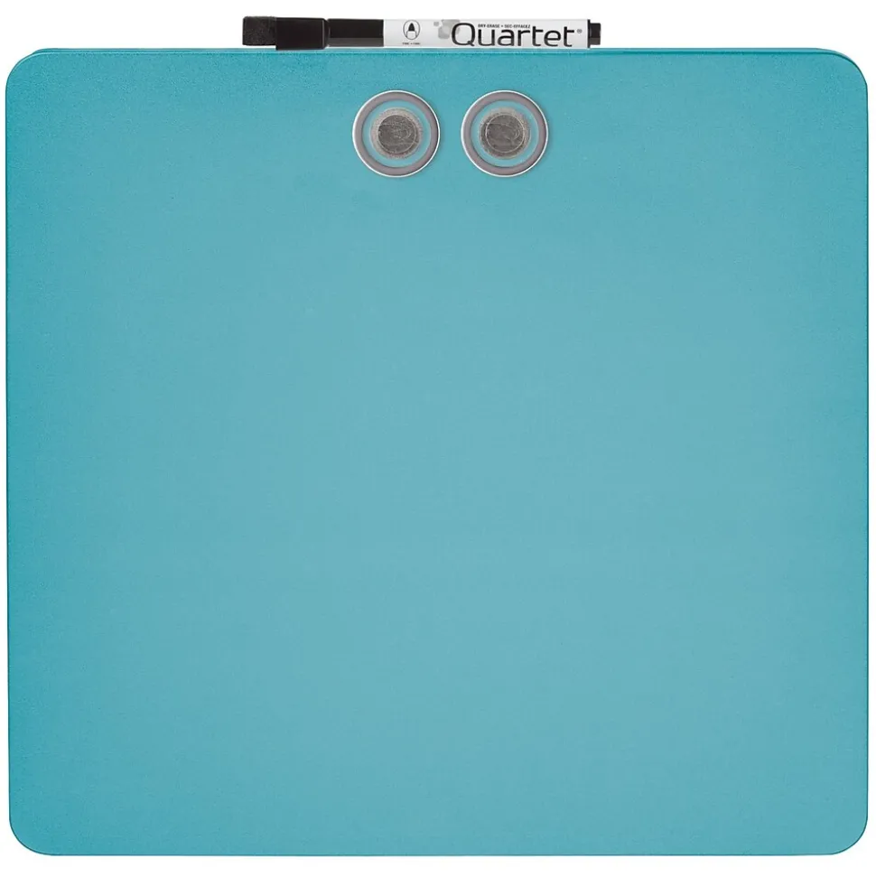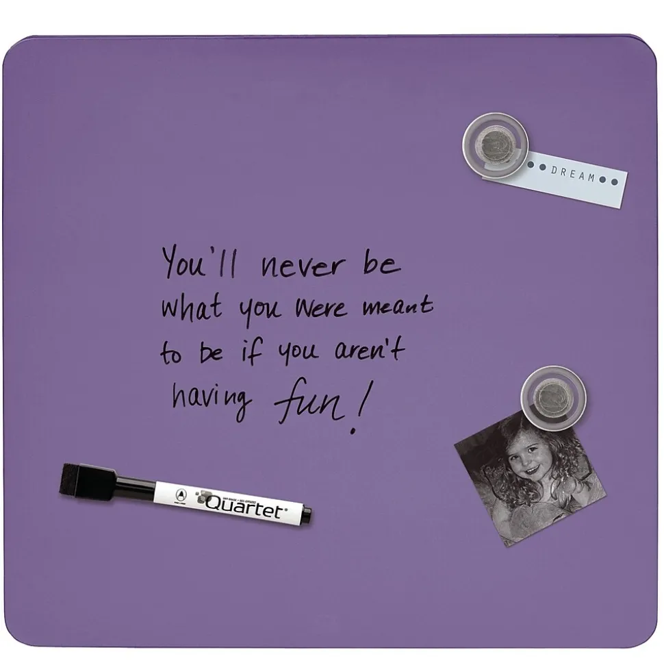 Brighten up your locker, a workspace, or another area with this assorted-color dry-erase board. The magnetic construction allows you to secure notes, memos, and other papers, while the included marker and two magnets make it easy to start using this board right away. This Quartet tin modular frameless square dry-erase board comes with mounting tape for added convenience. Assorted colors include white, blue, pruprle, or green. Color is chosen at random, no requests.