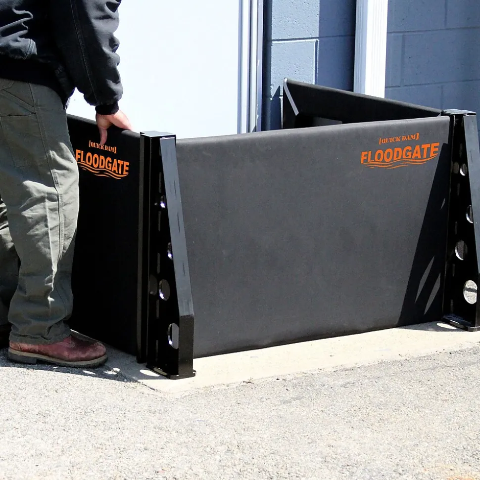 - Three-way flood gate extenders fit multiple-size doorways and seal off the doorway to stop flood water