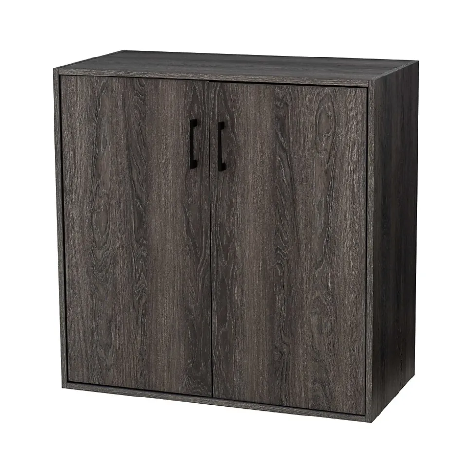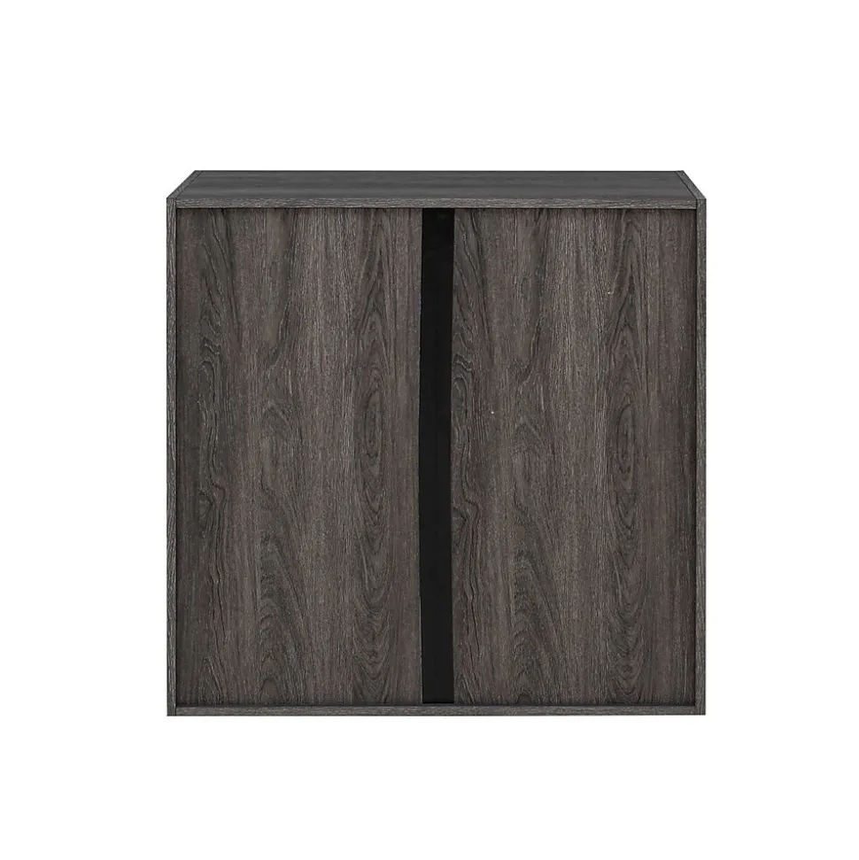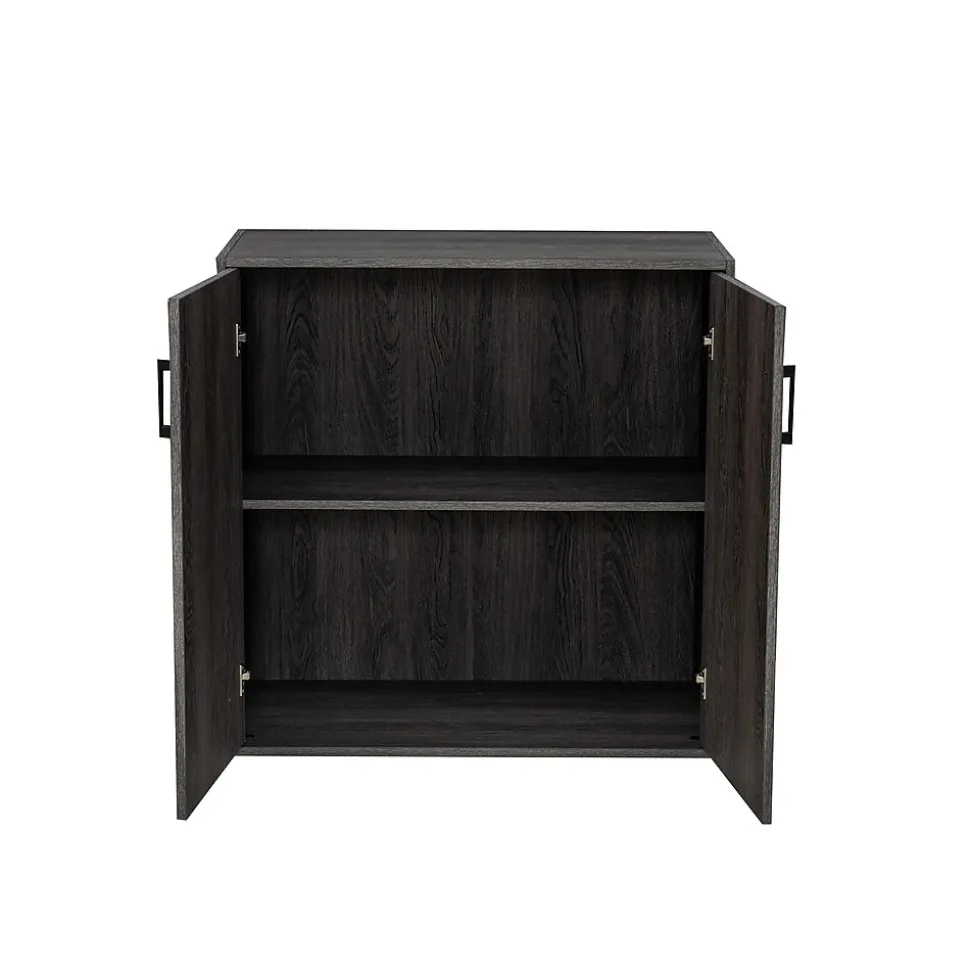 - Made of particleboard and MDF in a textured weathered gray finish