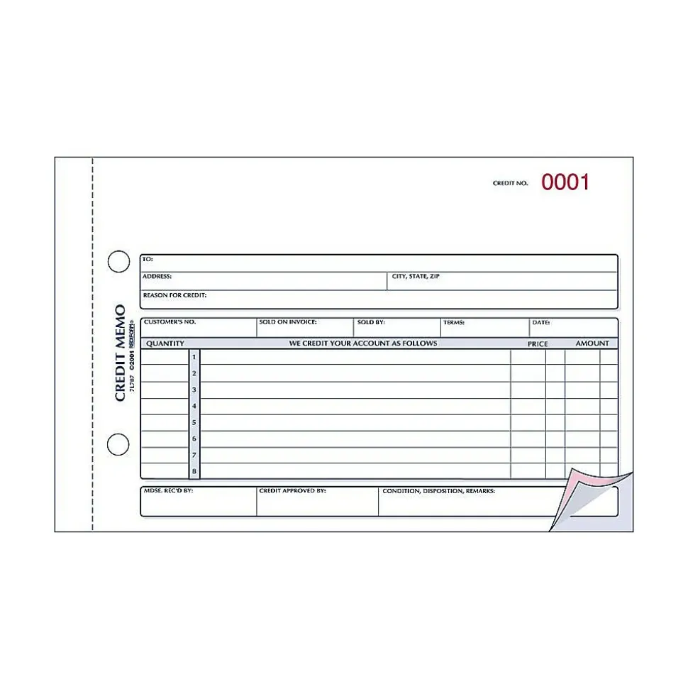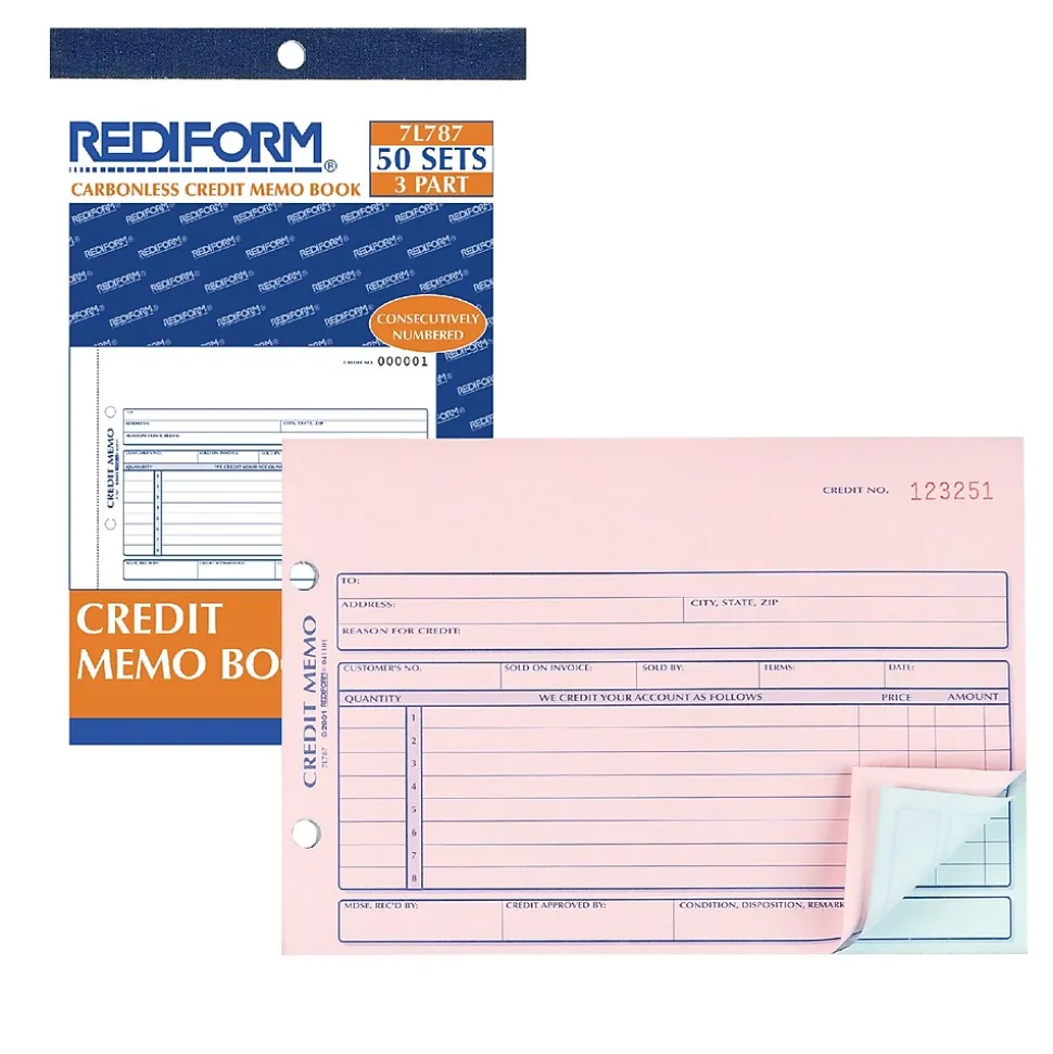 - Credit memo book is consecutively numbered for easy organization