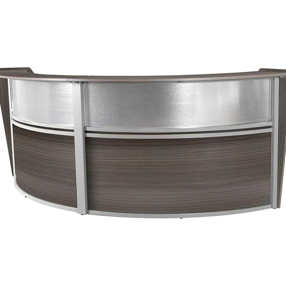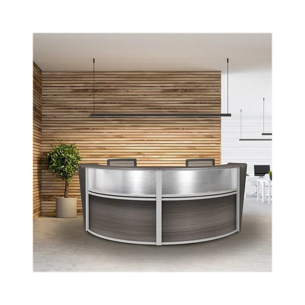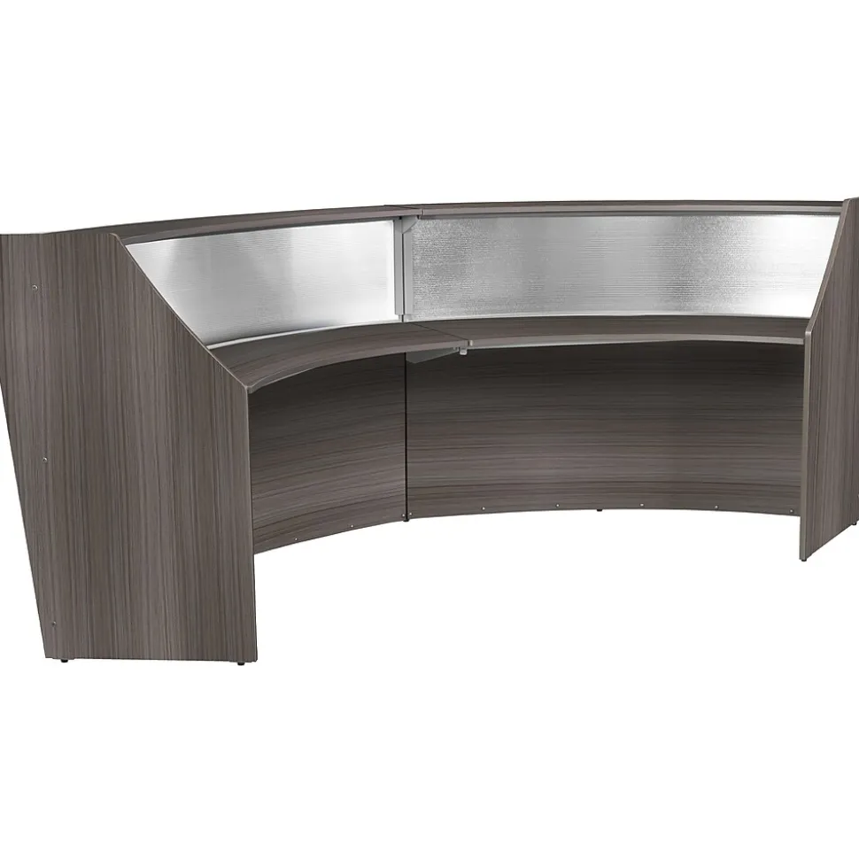 - Greet visitors properly with this curved double-unit reception desk workstation