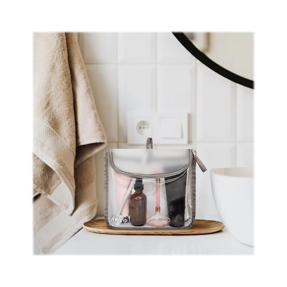 The ReZip travel zippered bag is a reimagined TSA-compliant quart storage bag. The curved zipper makes it easier to fill and retrieve items, even when the bag is full. The hanging loop lets you hang the bag from a hook in your hotel bathroom or from the door of your gym locker. And the clear front panel lets you see what’s inside without having to open the bag, so you can quickly find what you’re looking for. Whether you’re packing for your next vacation, heading to the gym, or just running errands, this compact yet spacious bag is perfect for organizing your toiletries, makeup, grooming products, or just about anything you can fit in it.